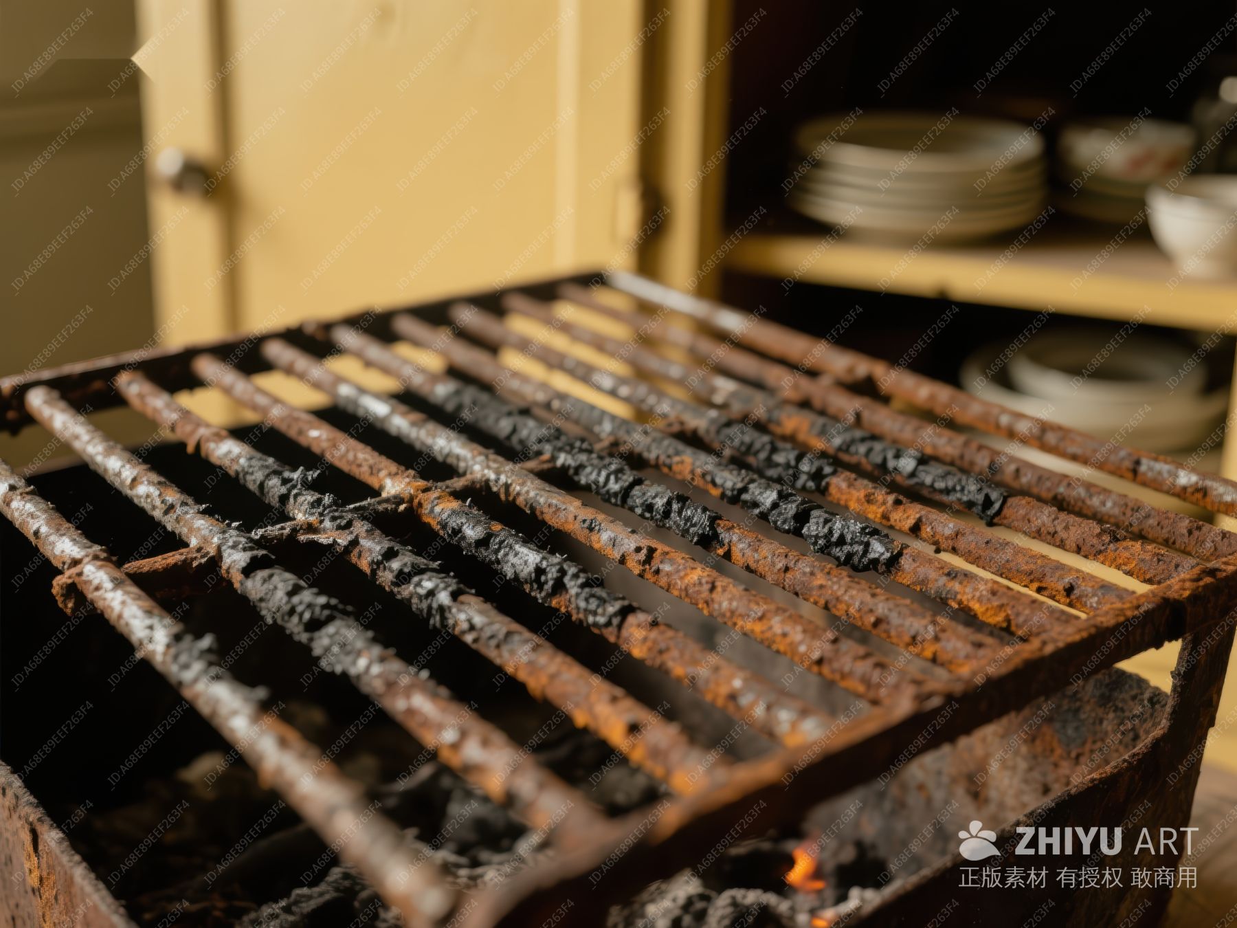 厨房里有一个白色烤箱,背景是黑白格子的墙纸。烤箱上