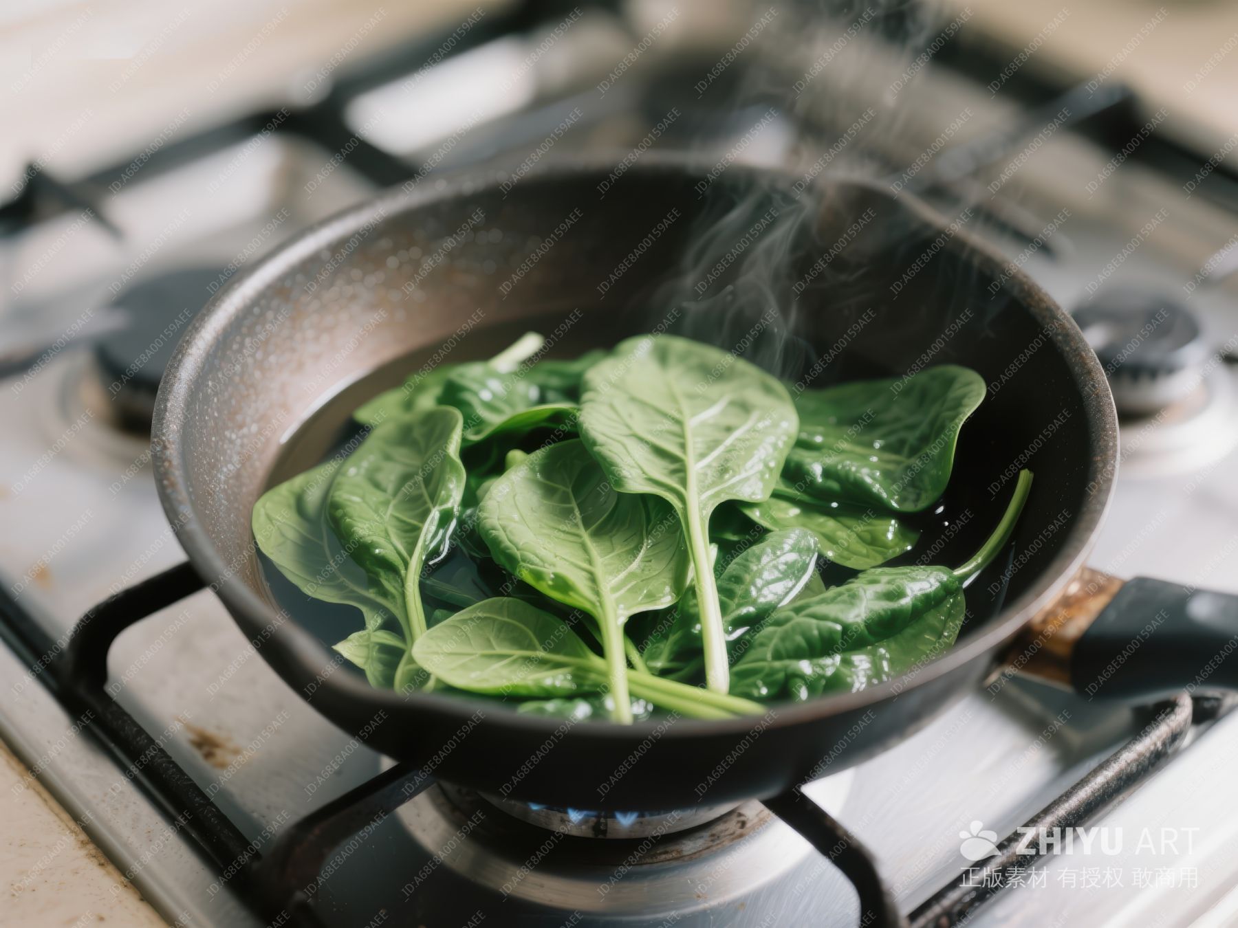 新鲜绿叶蔬菜与菜刀置于砧板上 478