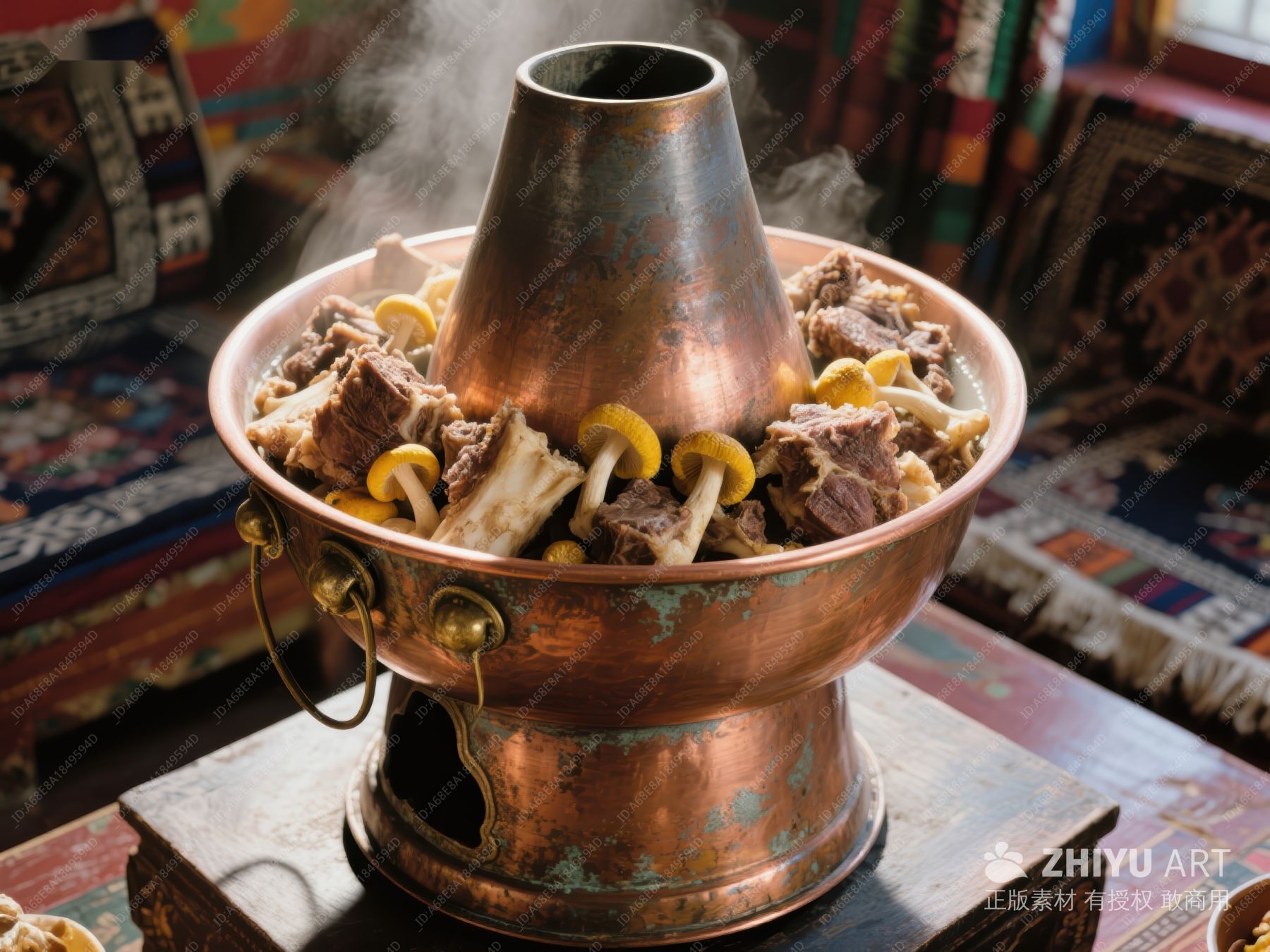 铜锅热气腾腾的羊肉火锅 728