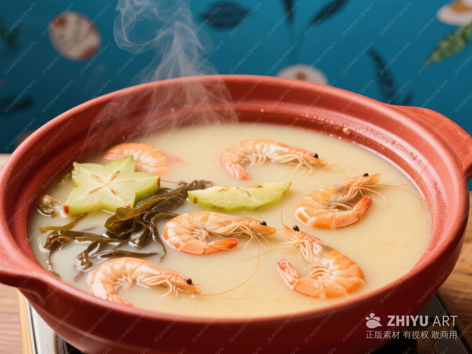 热气腾腾的海鲜汤,鲜虾与杨桃点缀 504