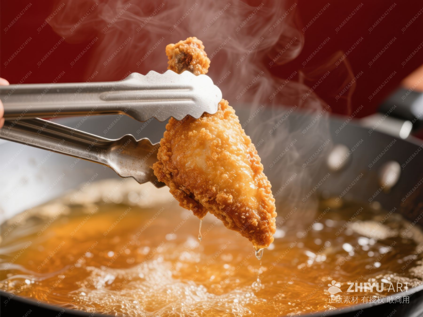 油炸鸡块被夹起,热气腾腾 854