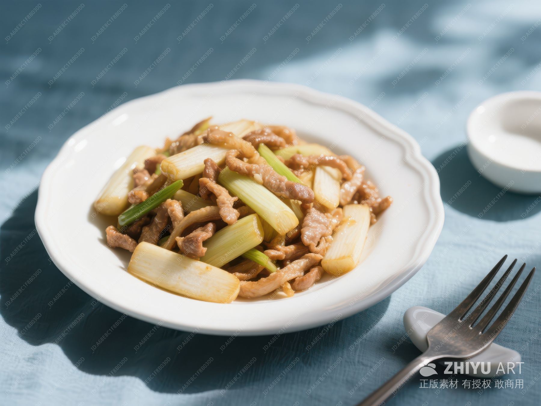 热腾腾的炒肉片与葱段 808