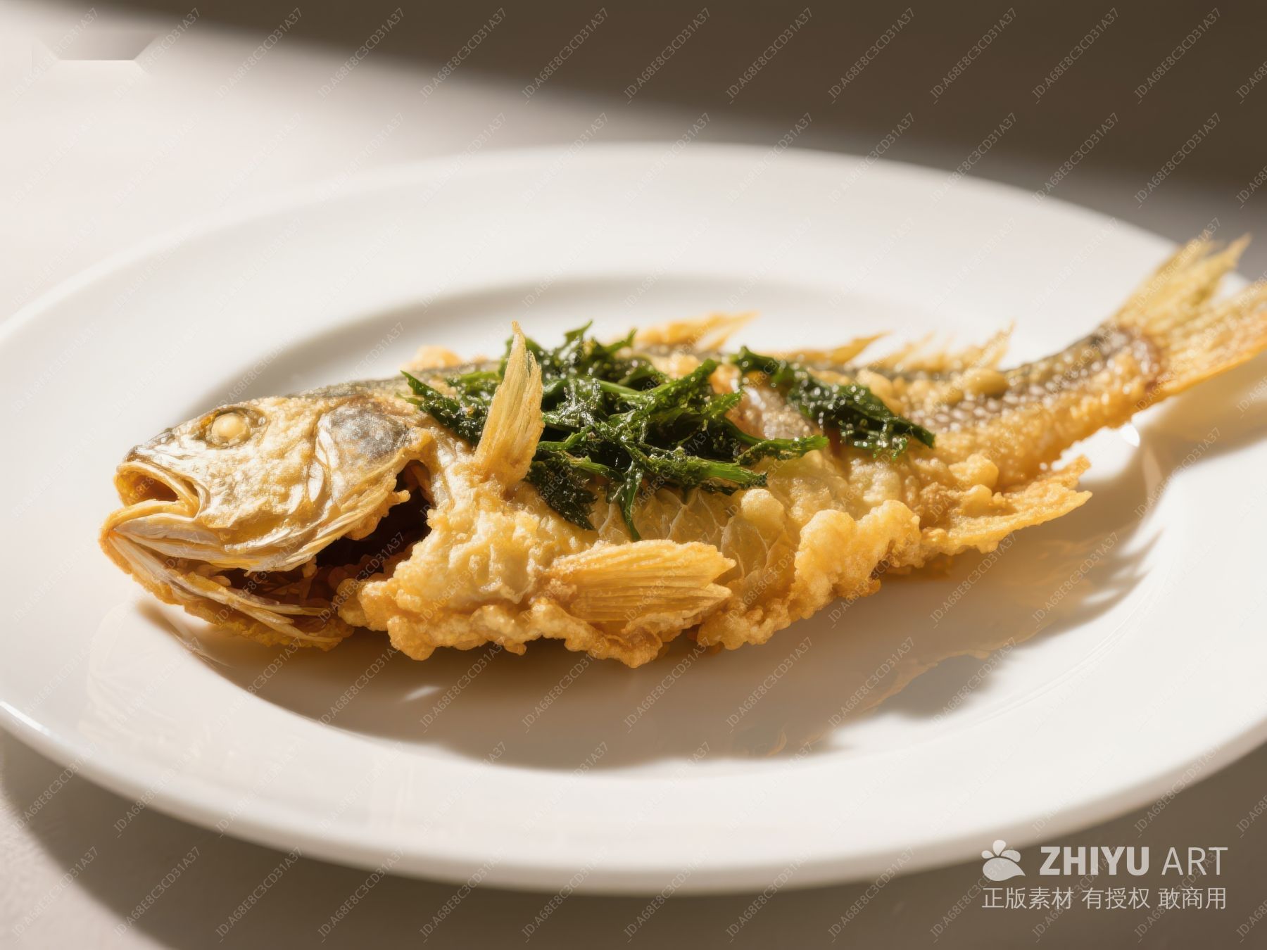 金黄酥脆的烤鱼特写