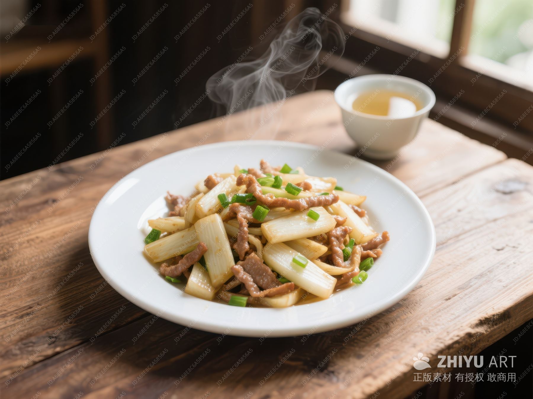 热腾腾的炒菜与茶杯 799