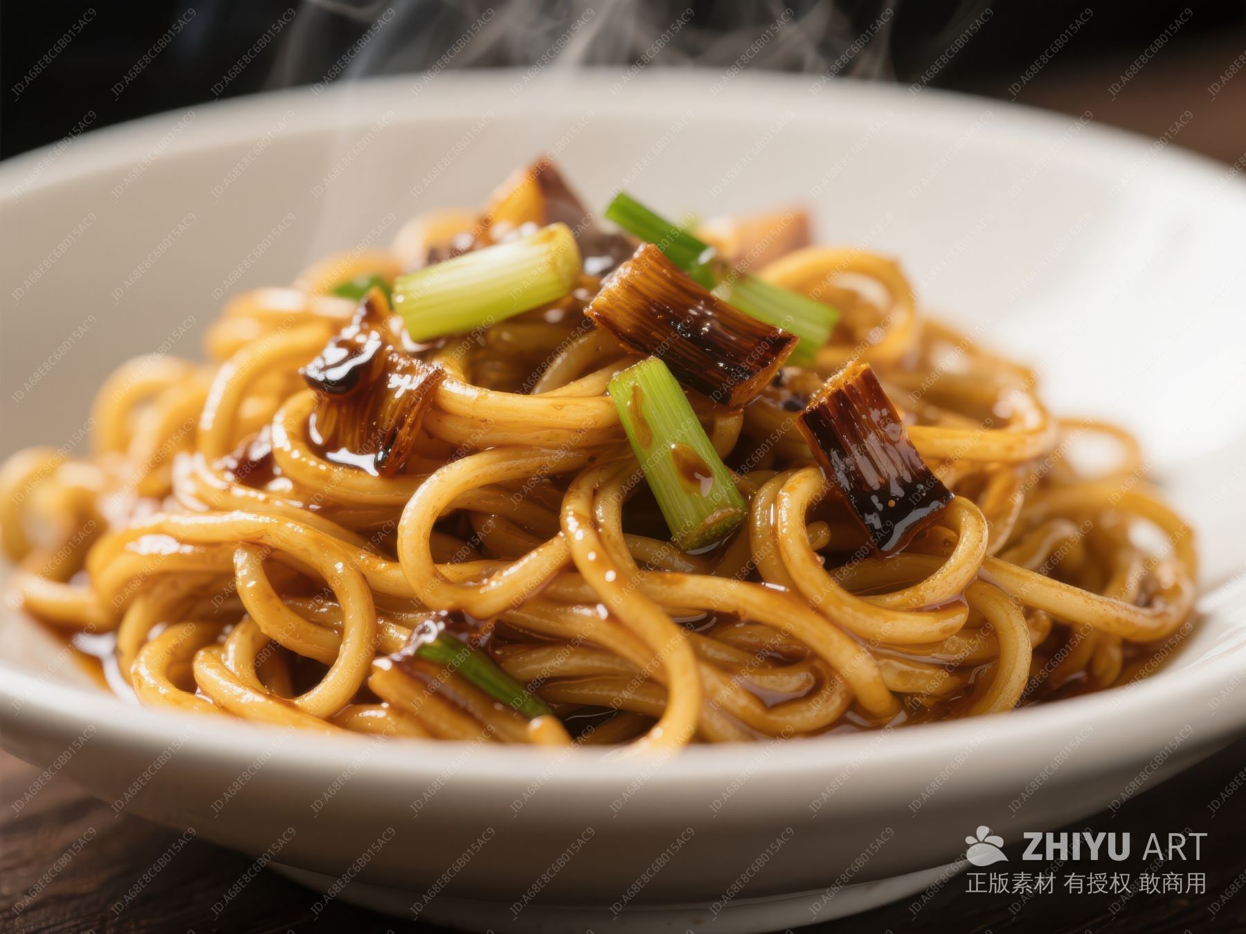 热腾腾的炒面配葱花和酱料 806