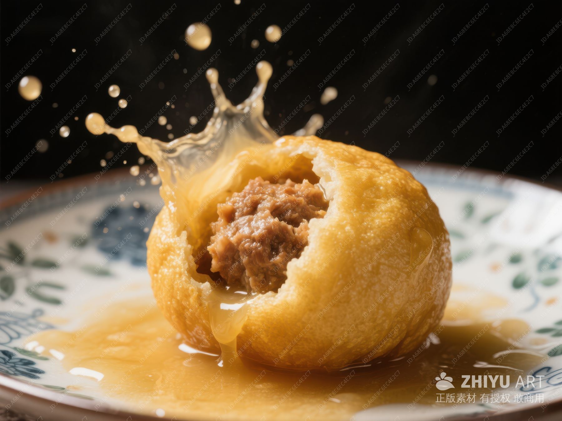 热腾腾的肉馅糕点浸入酱汁瞬间 846