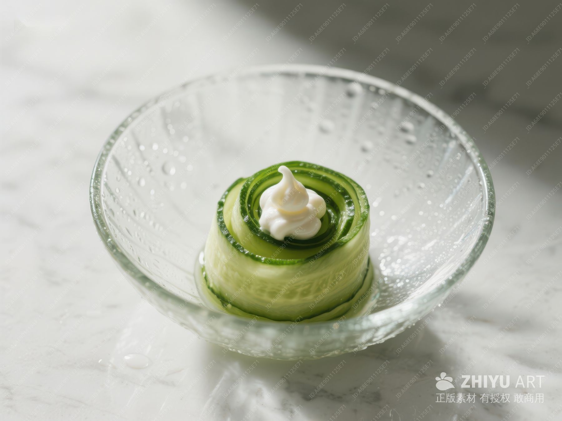 黄瓜卷配奶油,置于透明碗中 295