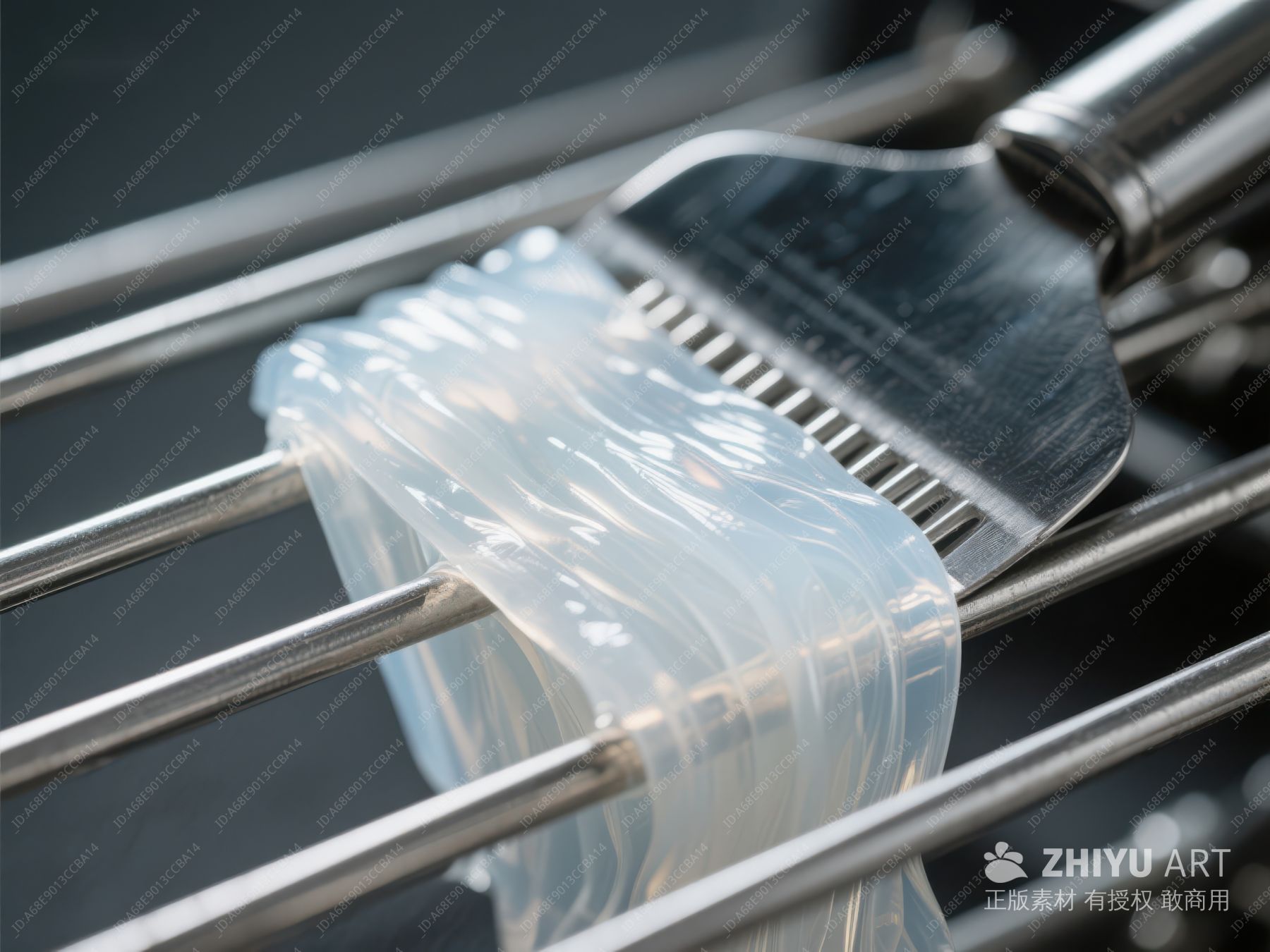 透明凝胶与金属工具的特写 1479