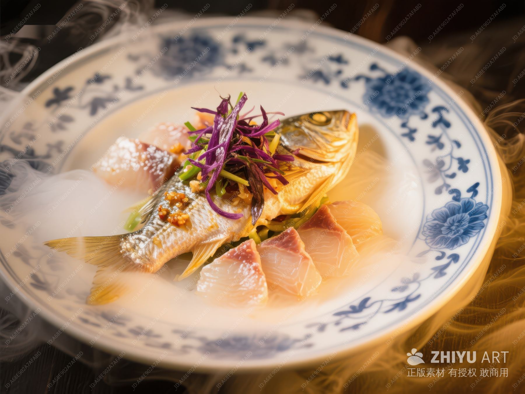 精致鱼肴,烟雾缭绕的美食呈现 565