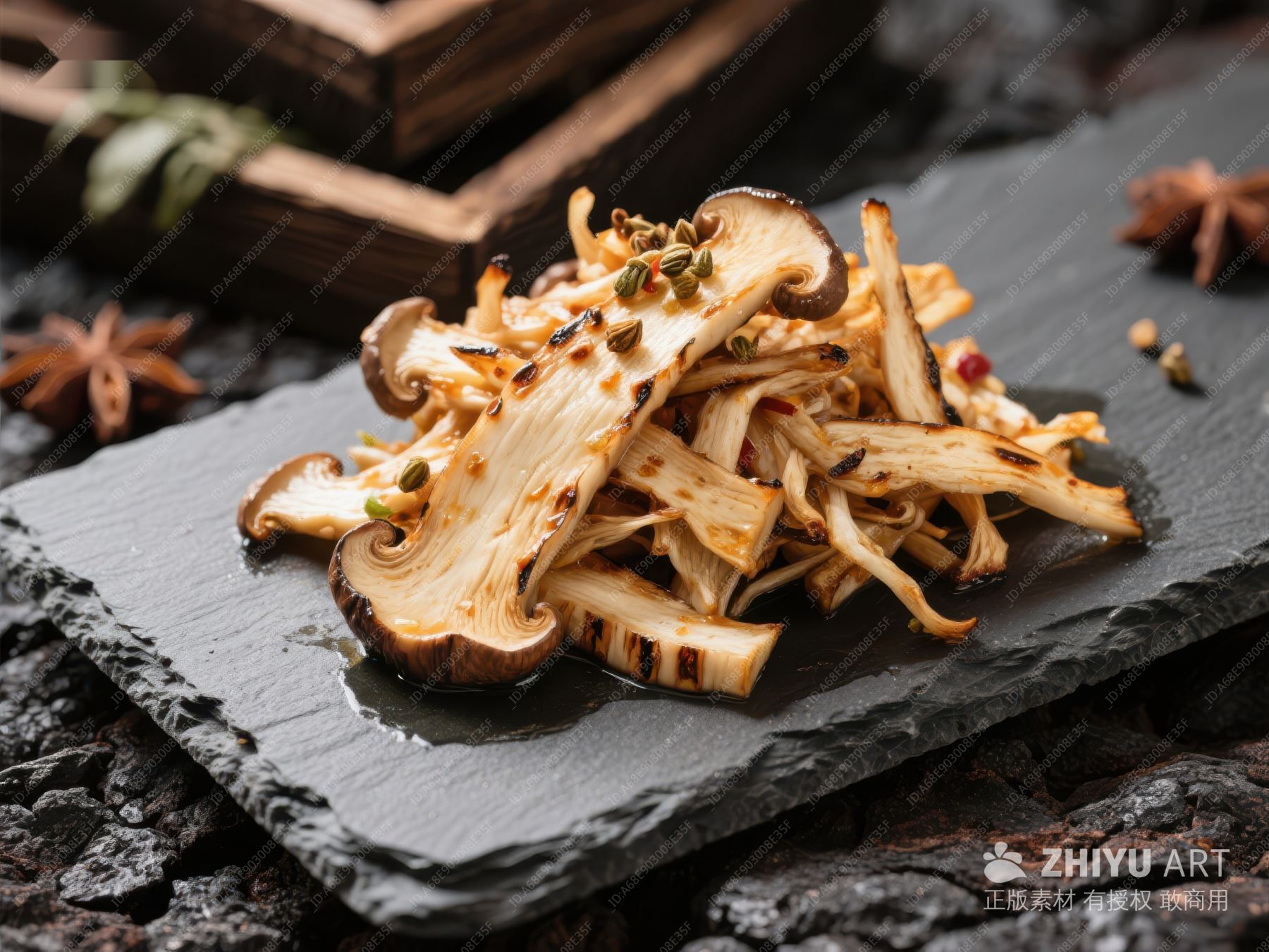 烤松茸蘑菇,撒上香料 593