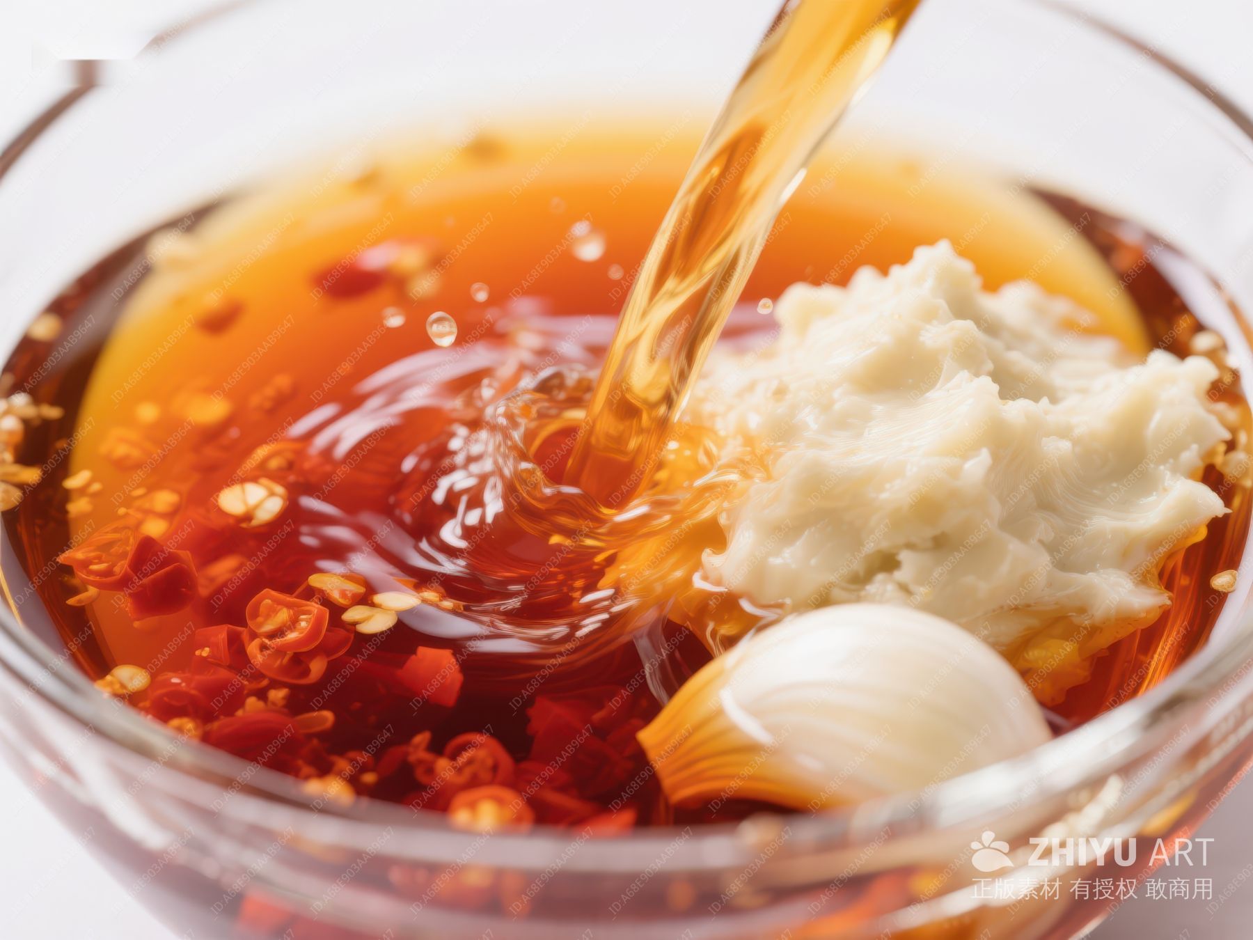辣椒油浇入蒜末碗中 745