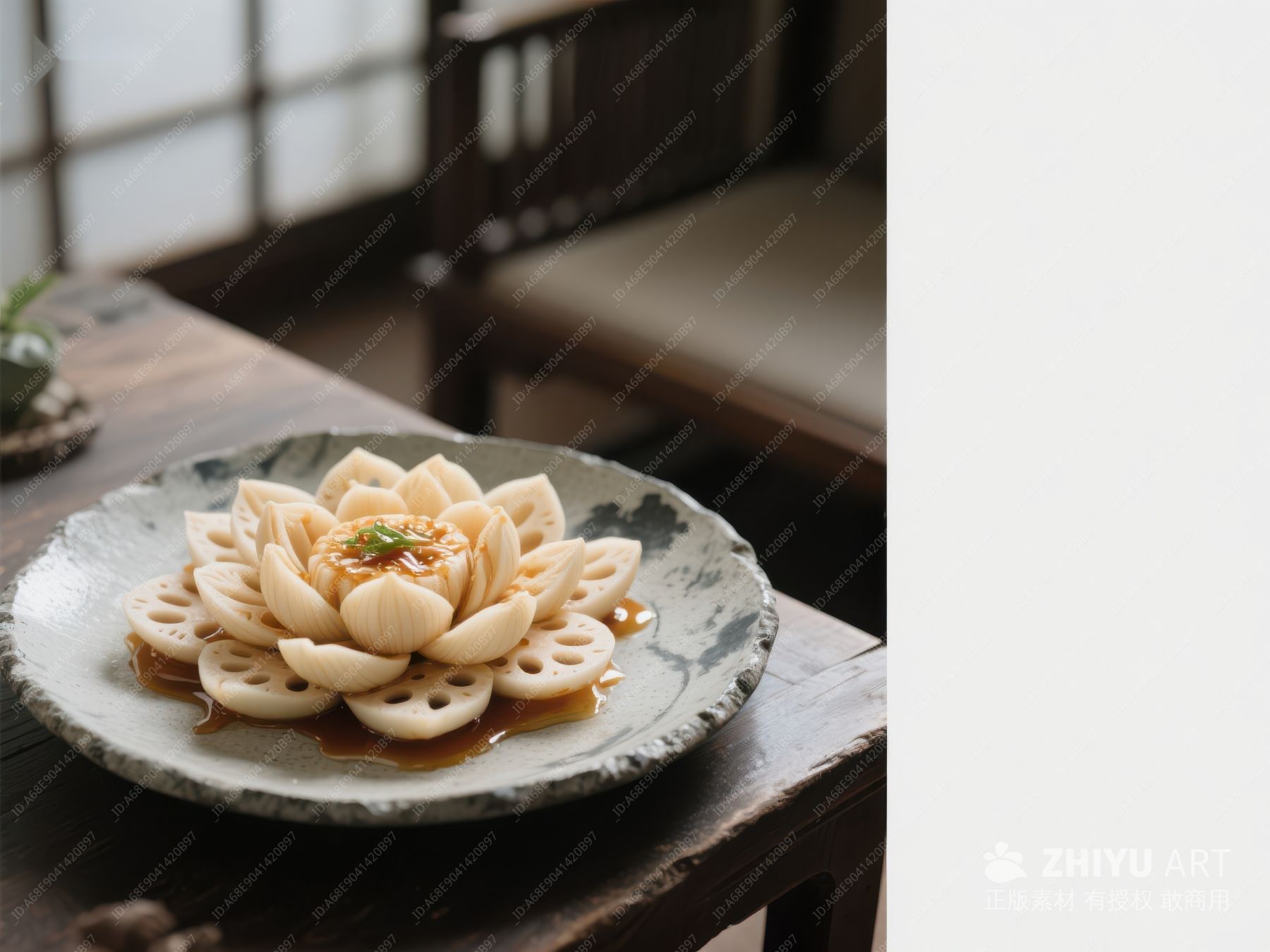 莲藕片摆盘,古典园林背景 799