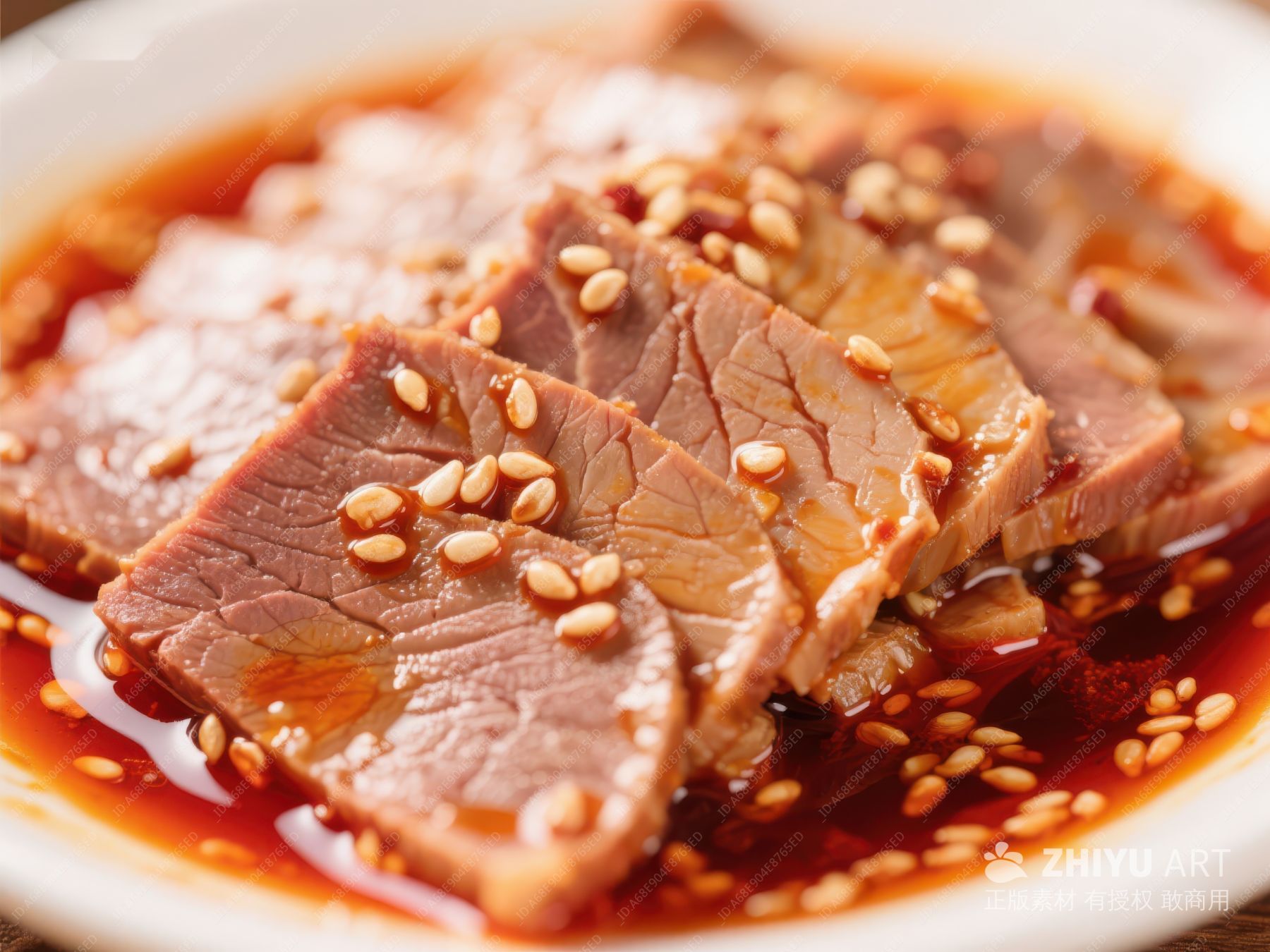 香辣卤牛肉片,撒芝麻红椒点缀 1597