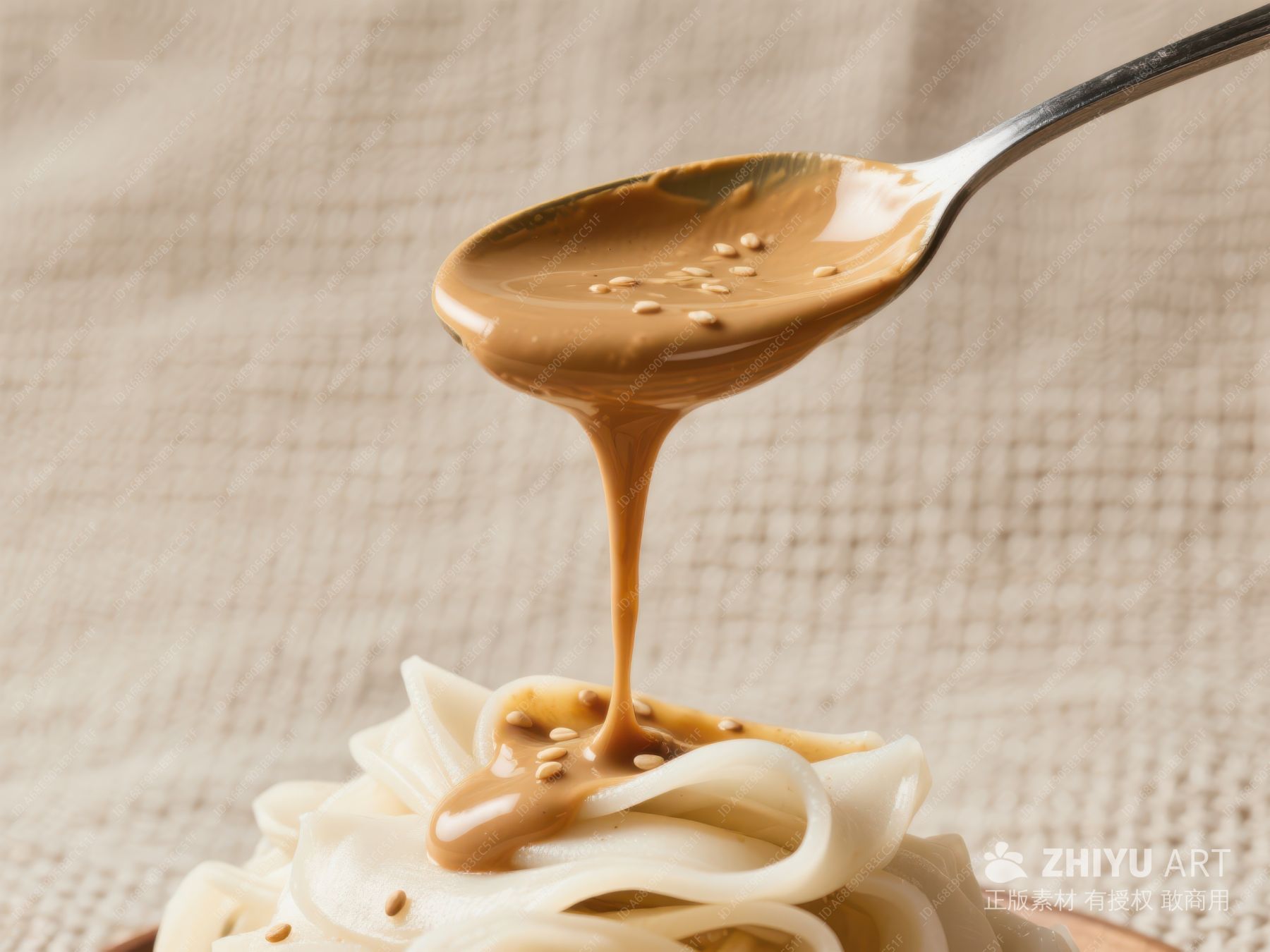 芝麻酱浇淋在面条上的美食特写 1800