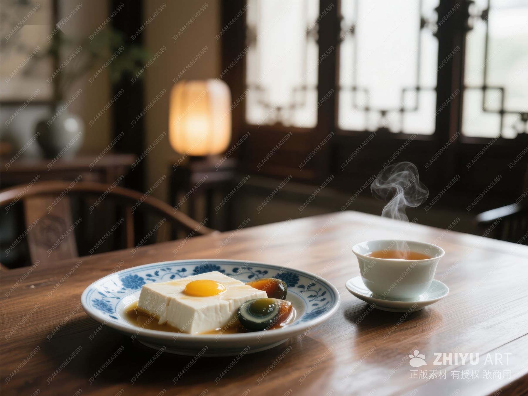 热茶与豆腐蛋黄,传统中式早餐 1289