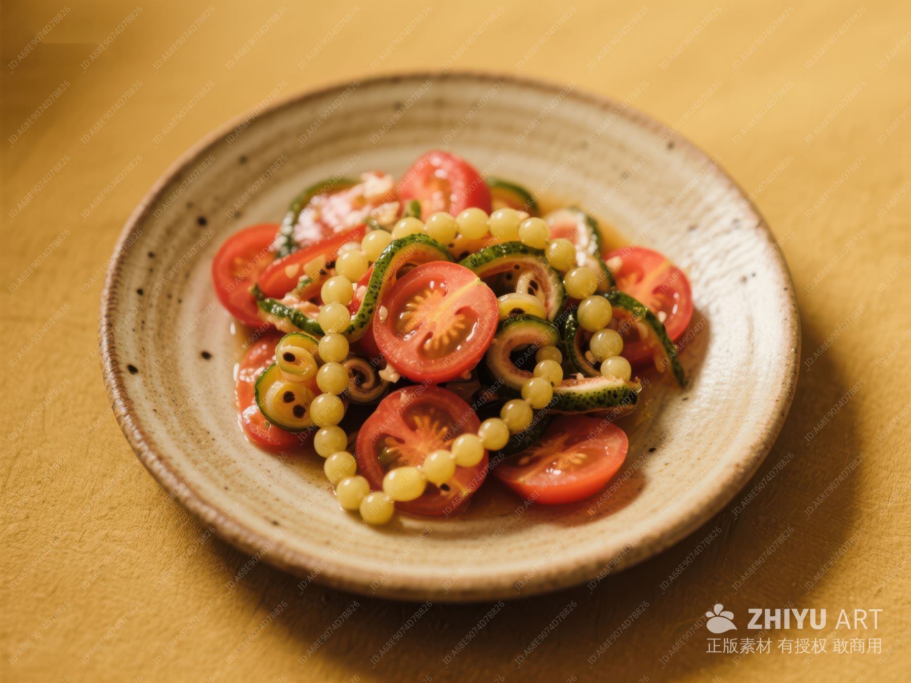 精致番茄珍珠沙拉,木质桌面装饰 458
