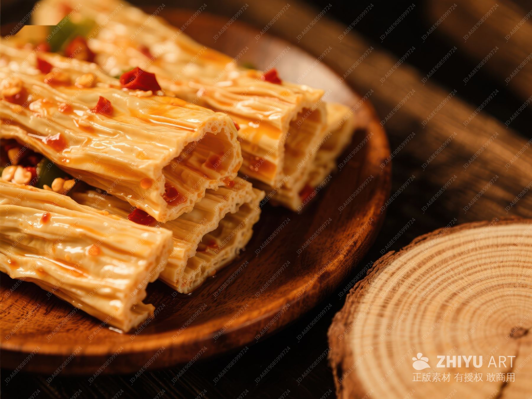 竹笋红椒卷盘于古朴瓷碗中 1826