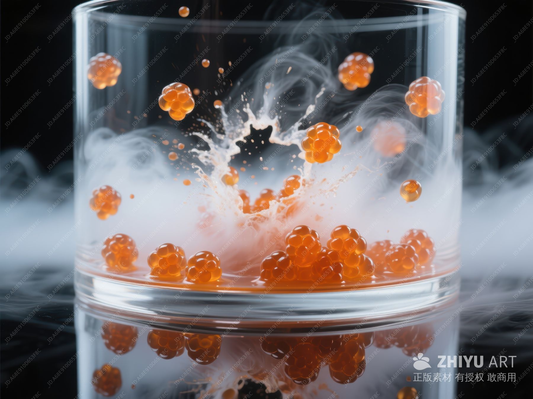 玻璃杯中橙色颗粒与烟雾交织的瞬间 37