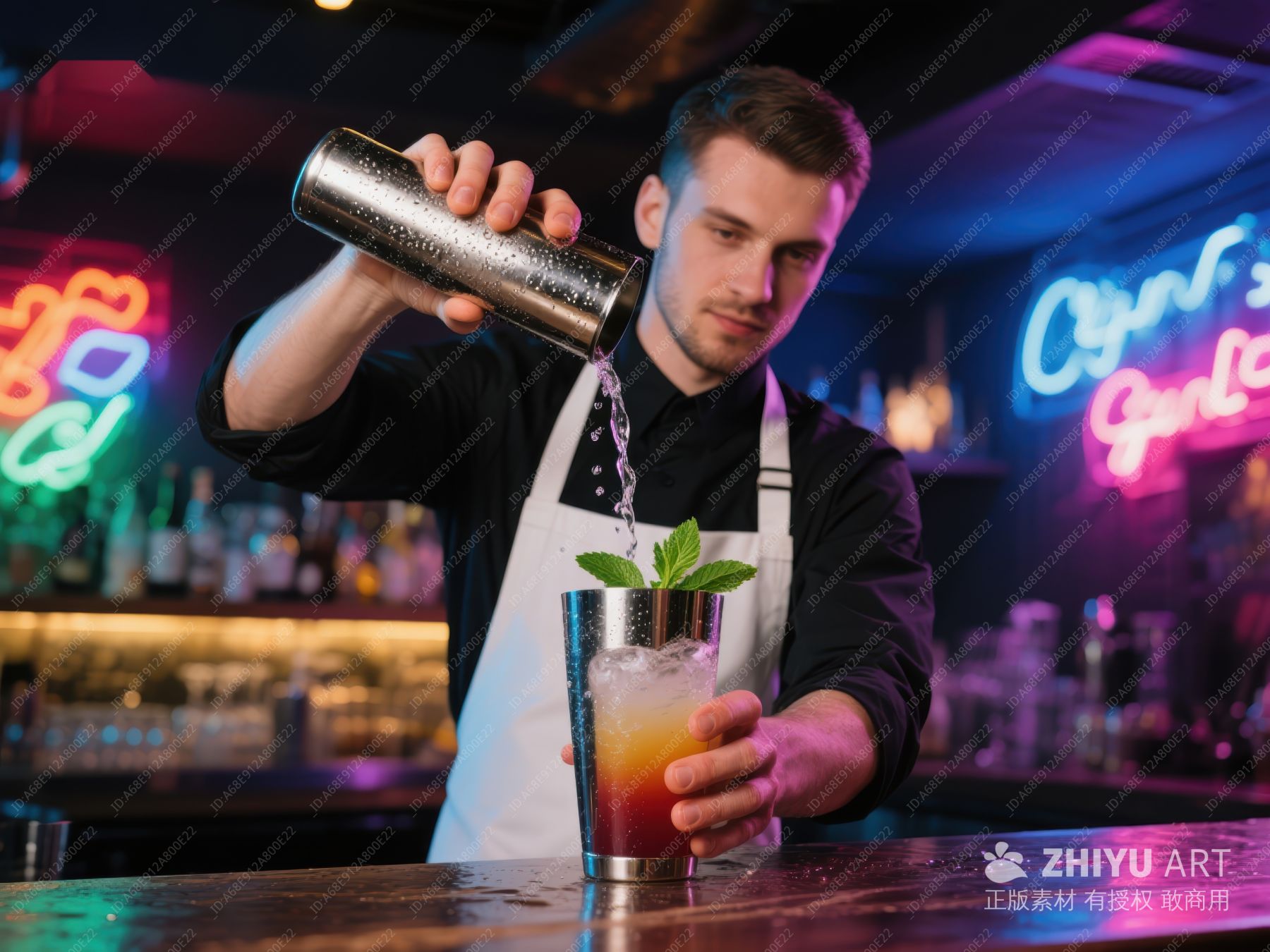 调酒师倾倒鸡尾酒于装饰杯中 194
