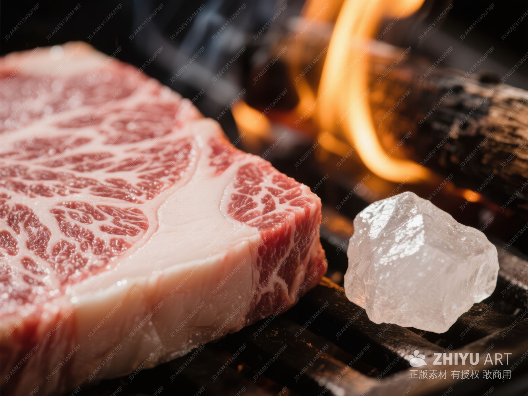 火焰旁的生牛肉与盐块 359