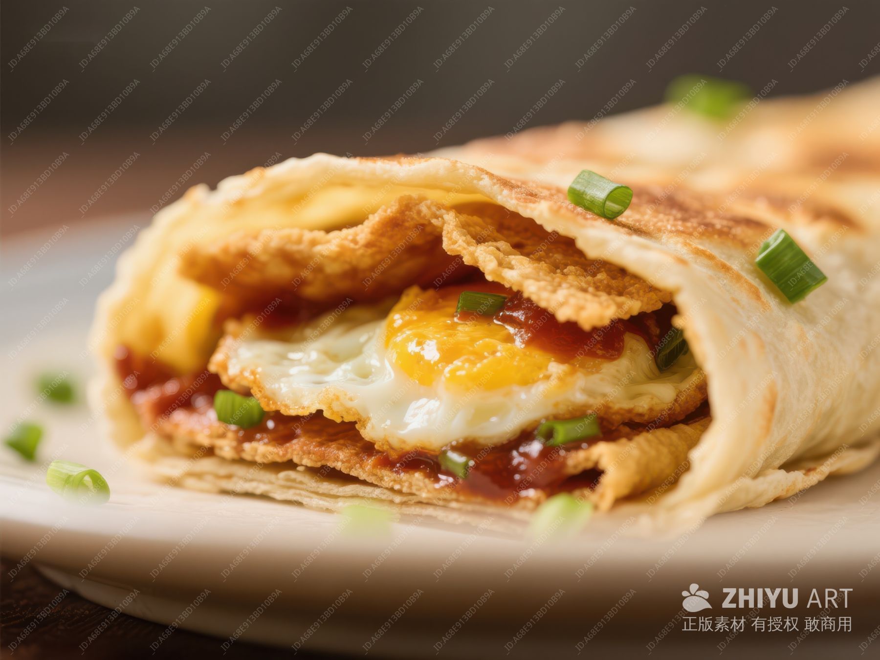 金黄煎饼卷蛋,葱花点缀 457