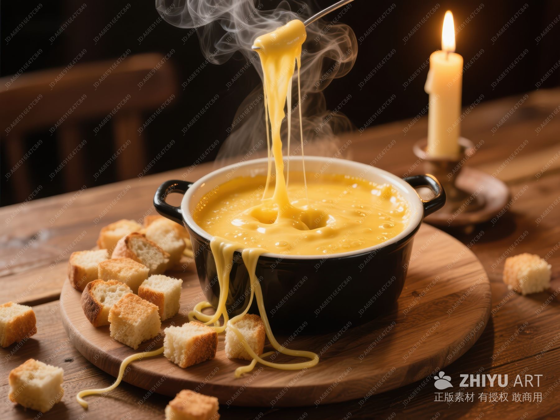 热气腾腾的奶酪火锅配面包和白葡萄酒 490