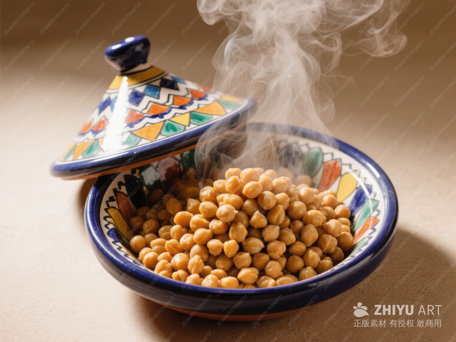 热气腾腾的鹰嘴豆与彩绘陶锅 932
