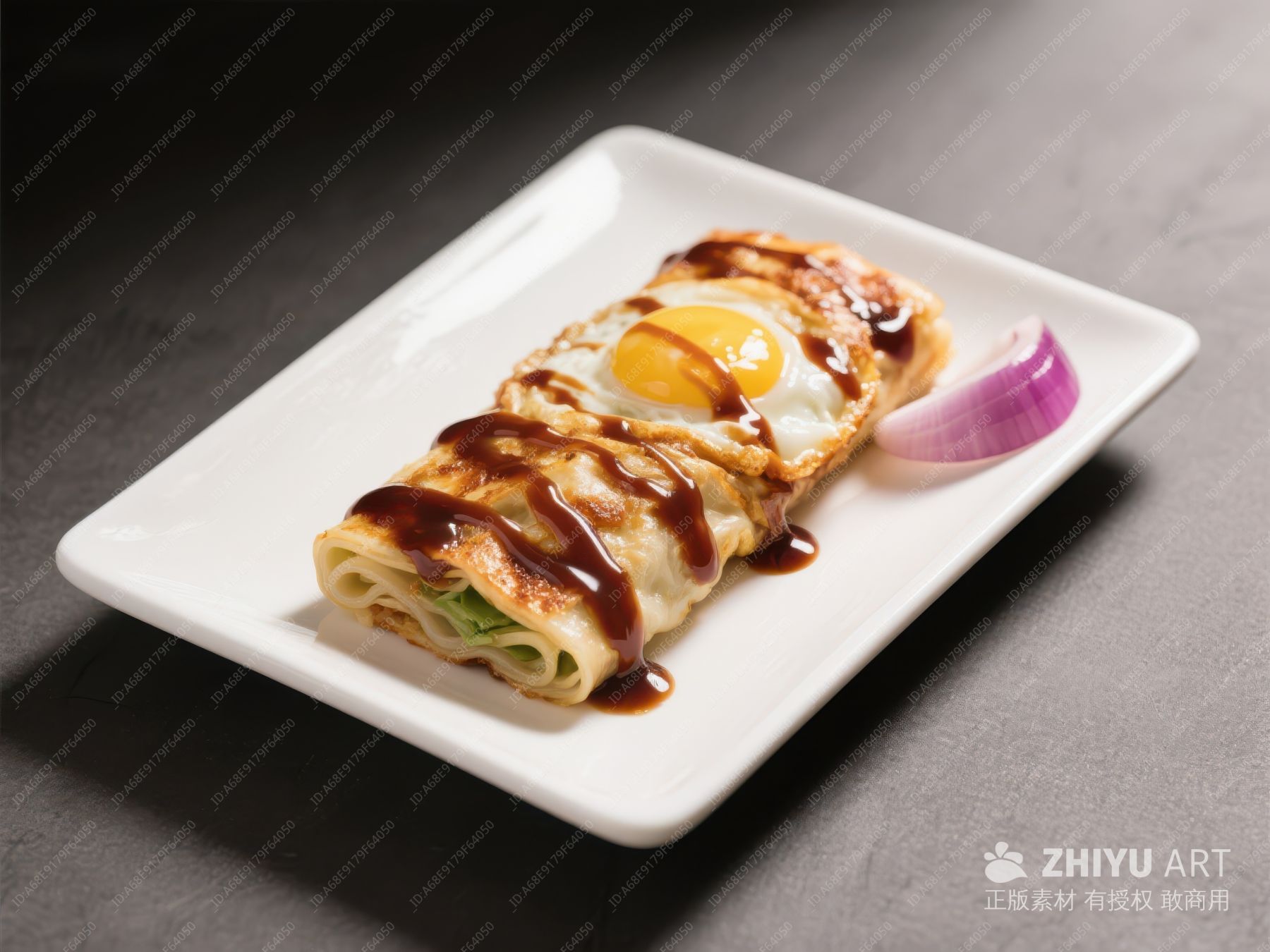煎蛋卷配蛋黄酱和红椒点缀 384