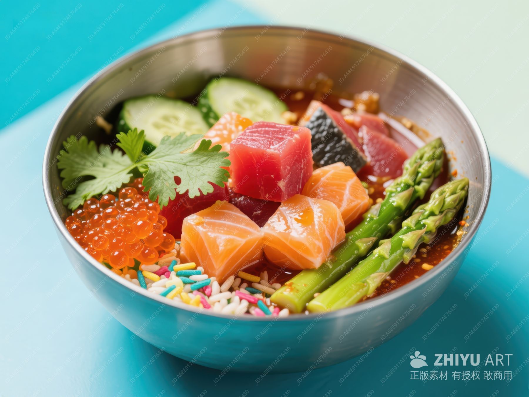 鲜美海鲜沙拉,搭配蔬菜与酱汁 1217