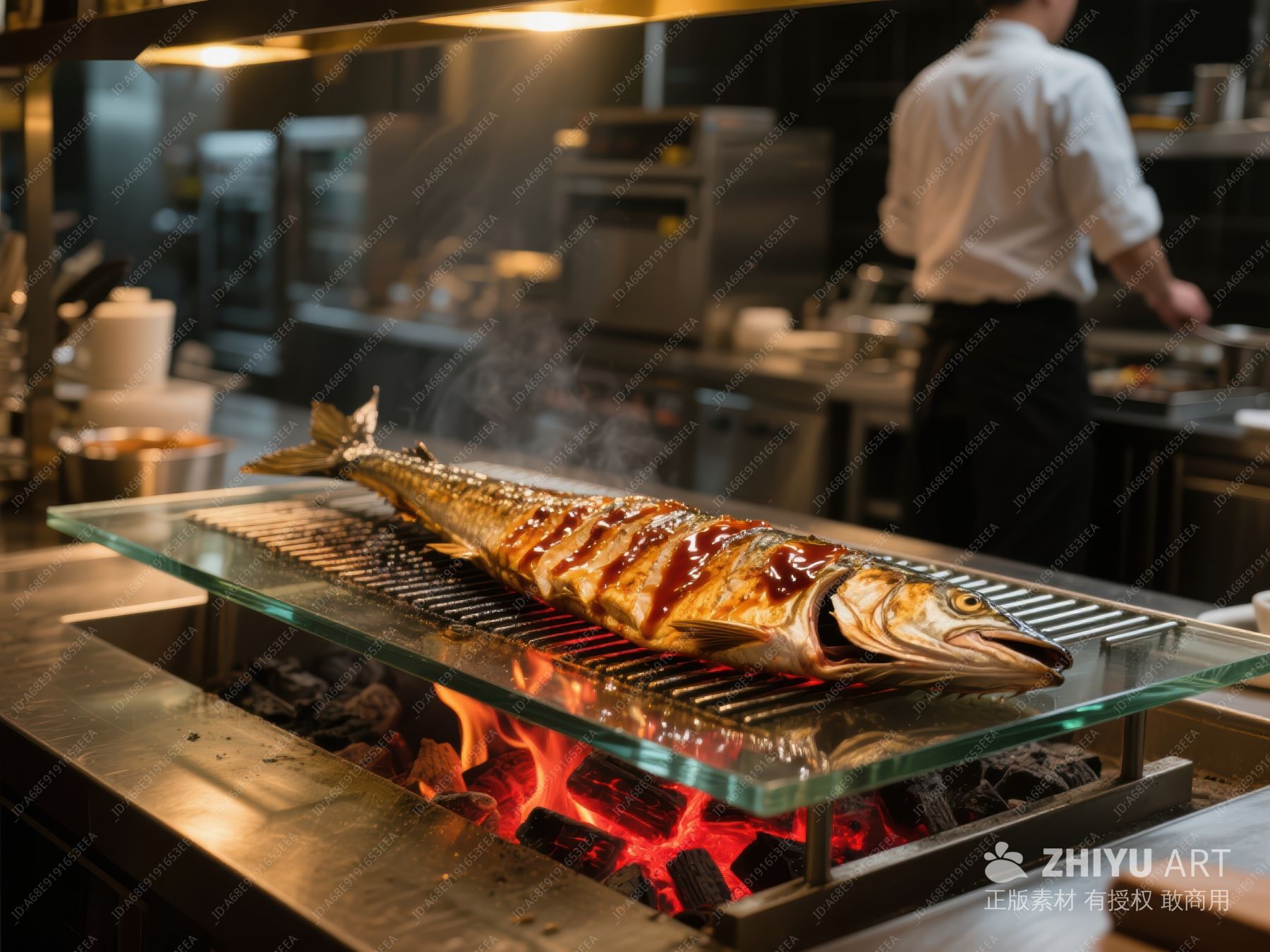 炭火烤鱼,厨房烹饪场景 1149