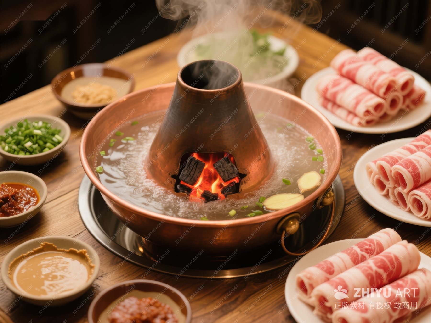 铜锅涮肉,热气腾腾的美食场景 737