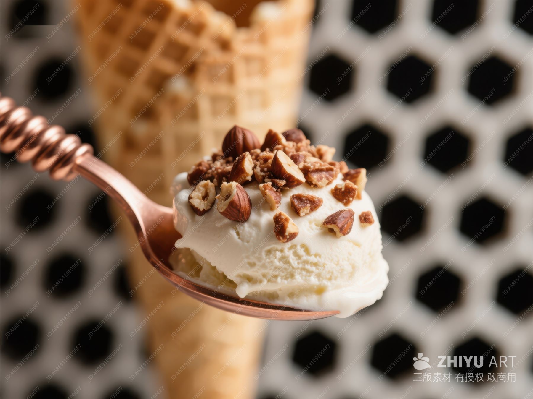 冰淇淋甜筒配樱桃,勺子舀取 26