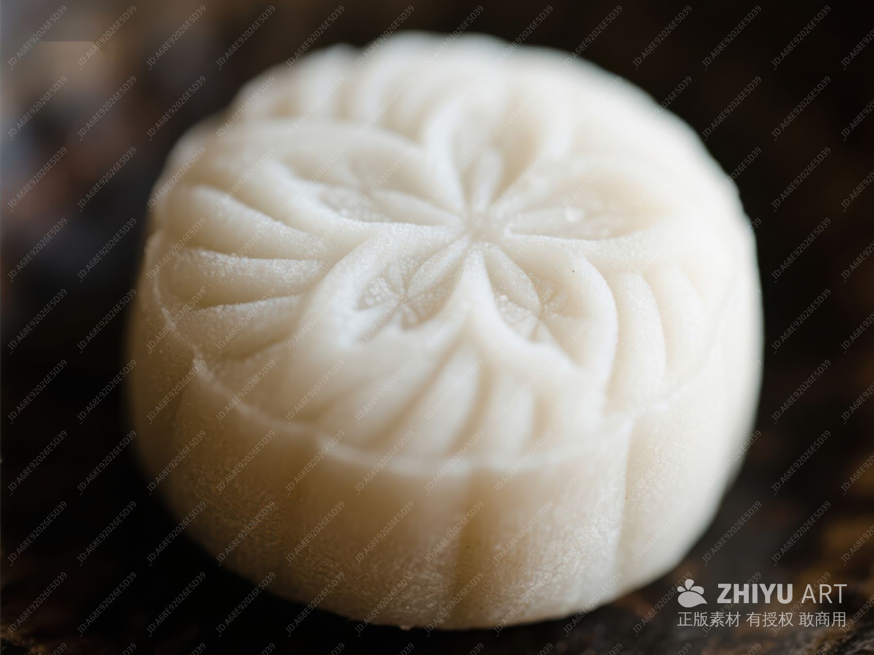 酥皮月饼特写,表面裂纹清晰可见