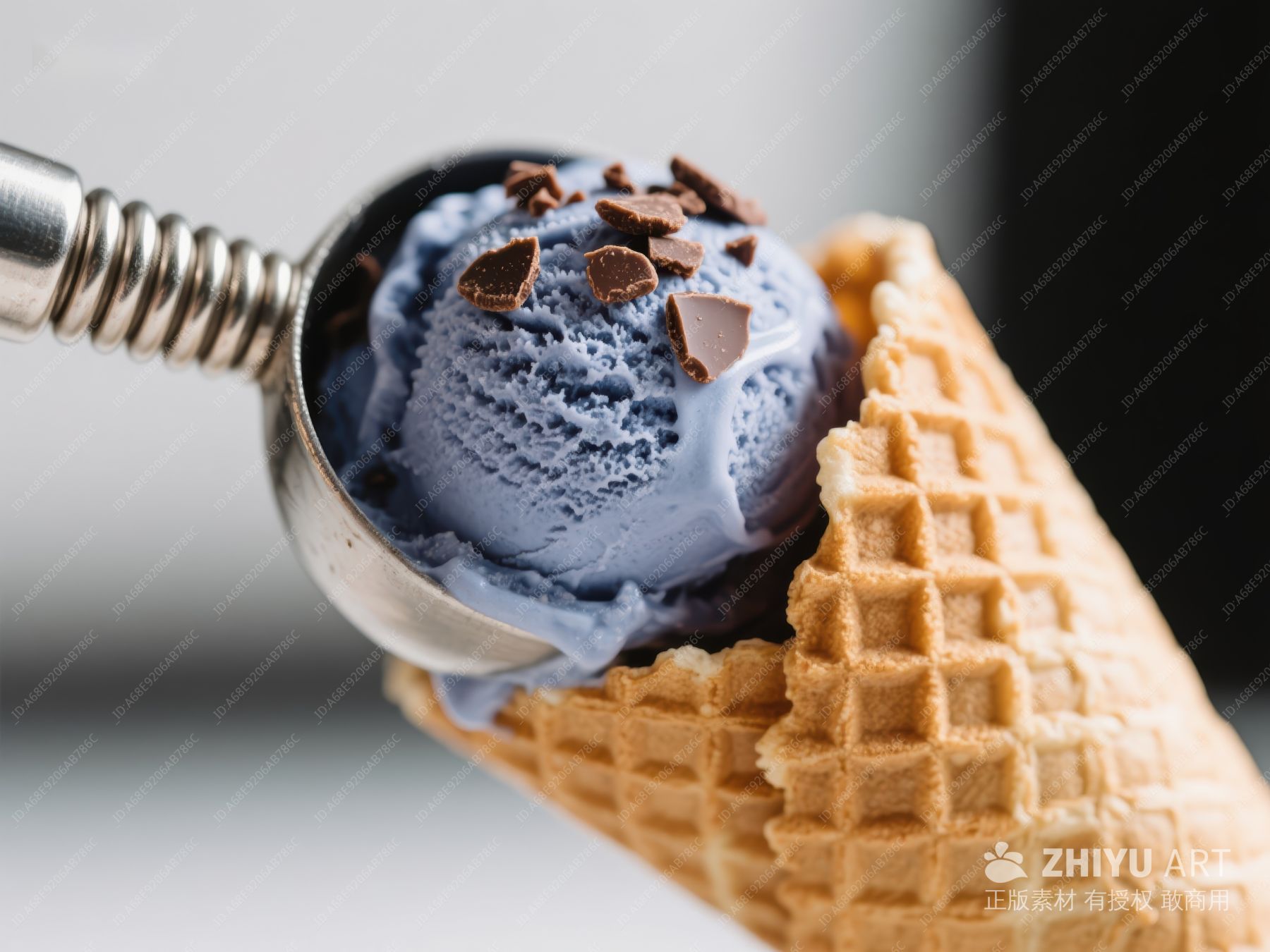 冰淇淋甜筒配樱桃,勺子舀取 26