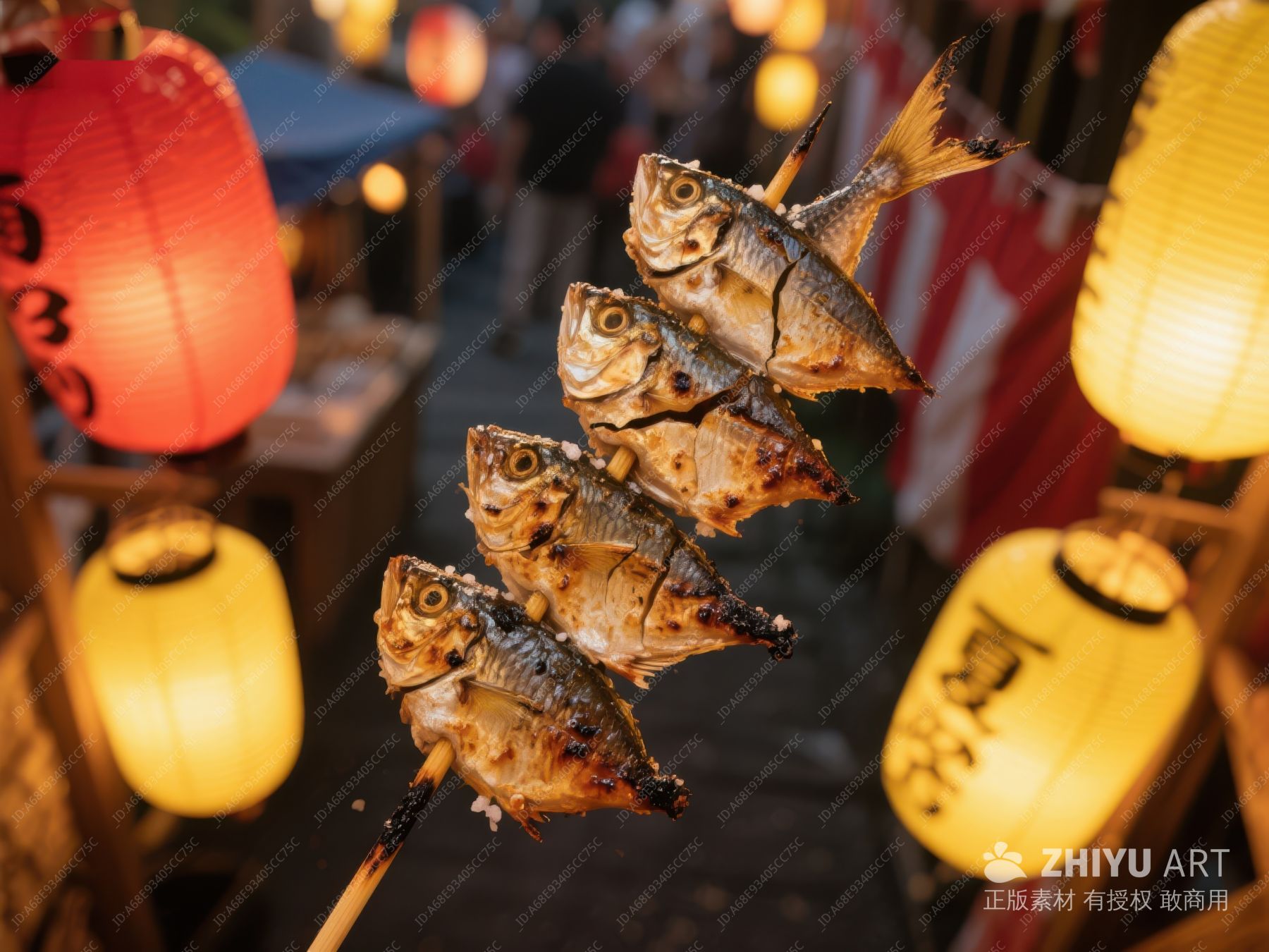 夜市烤鱼串,灯笼映衬美食 275