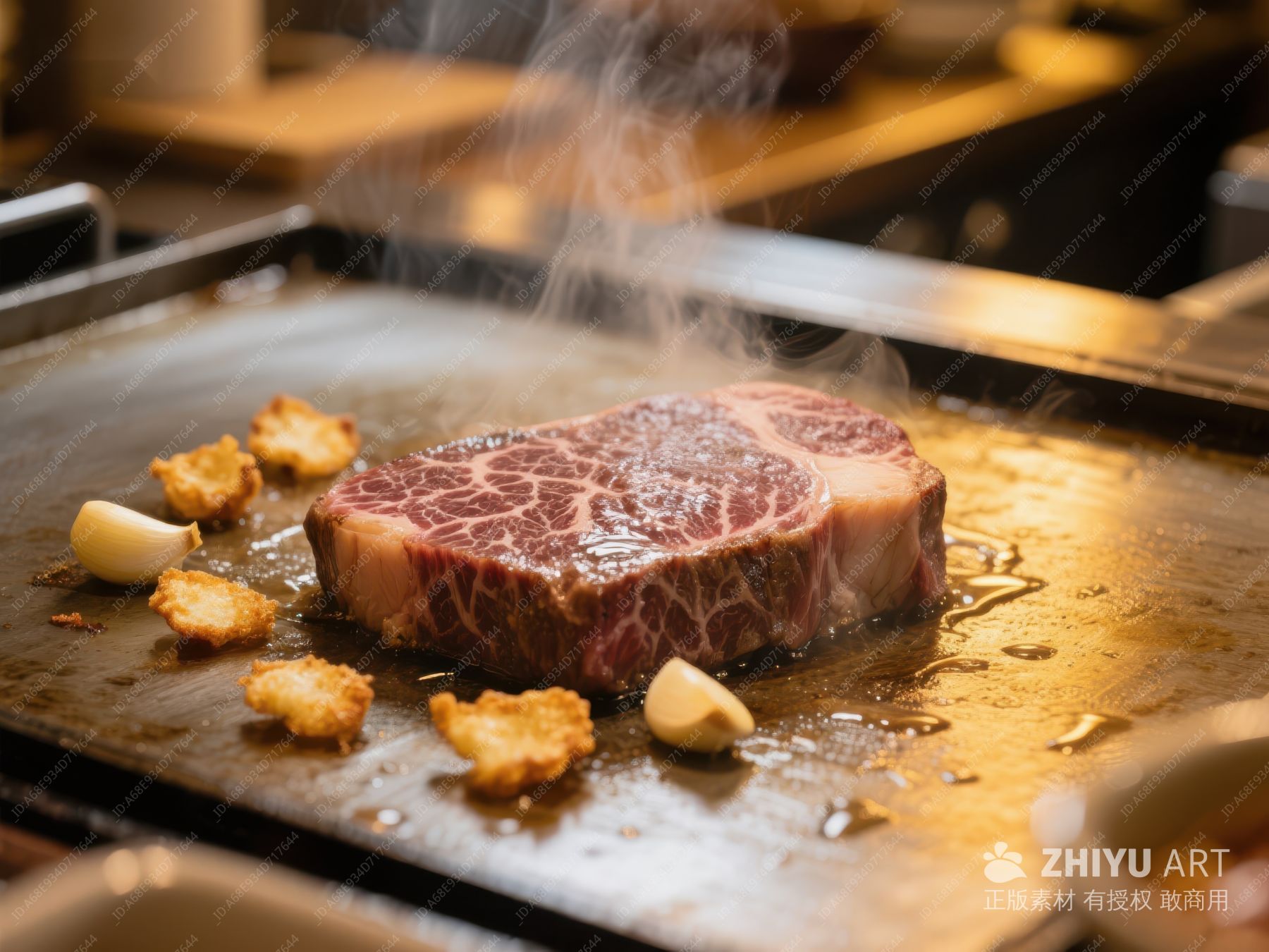 铁板上的炙烤牛肉与蒜香 262