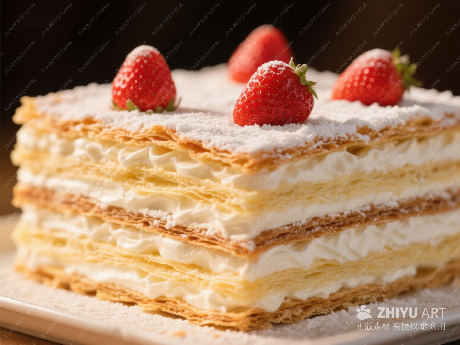草莓点缀的千层蛋糕