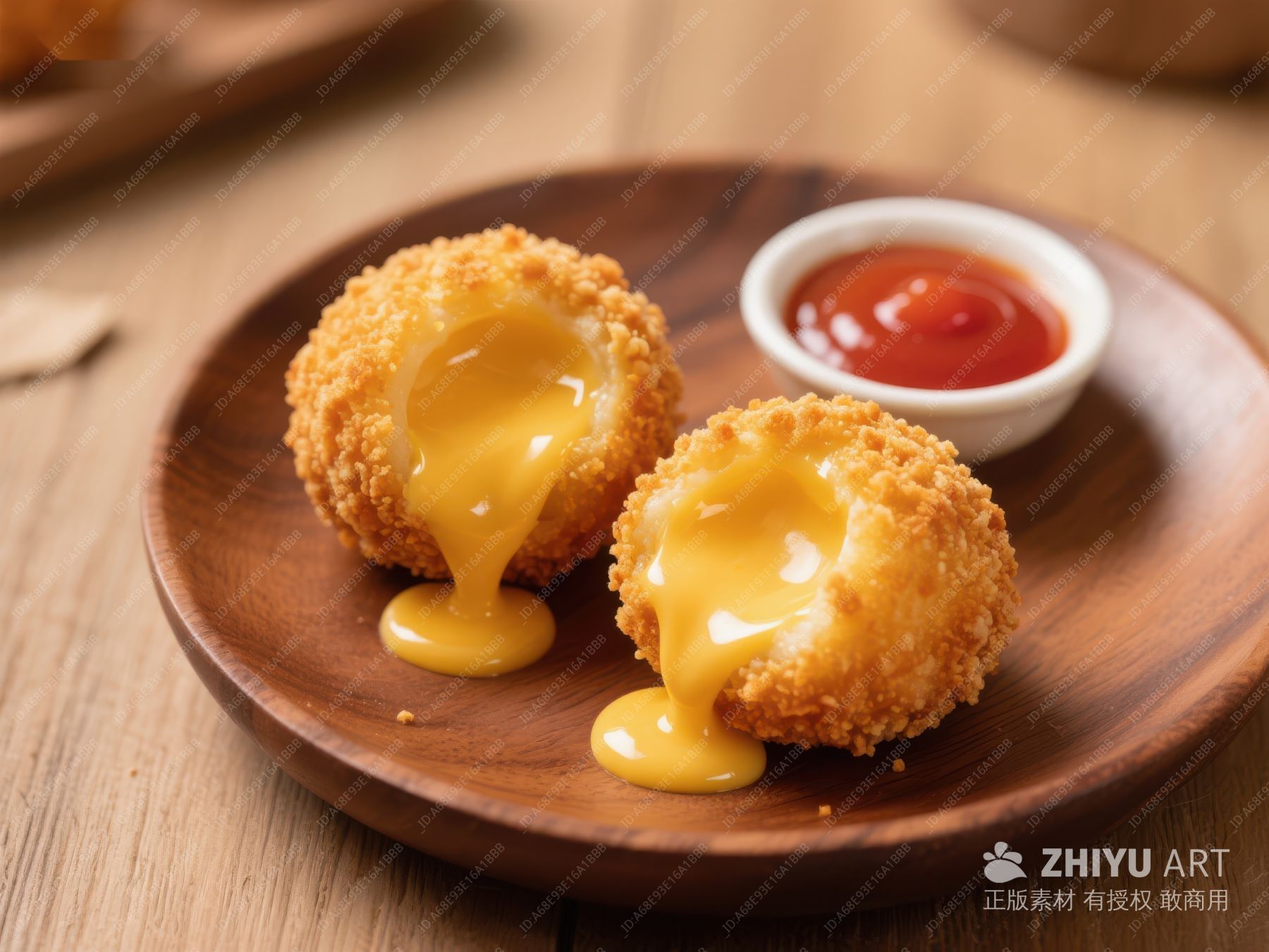 金黄酥脆的蛋黄酱炸球配番茄酱