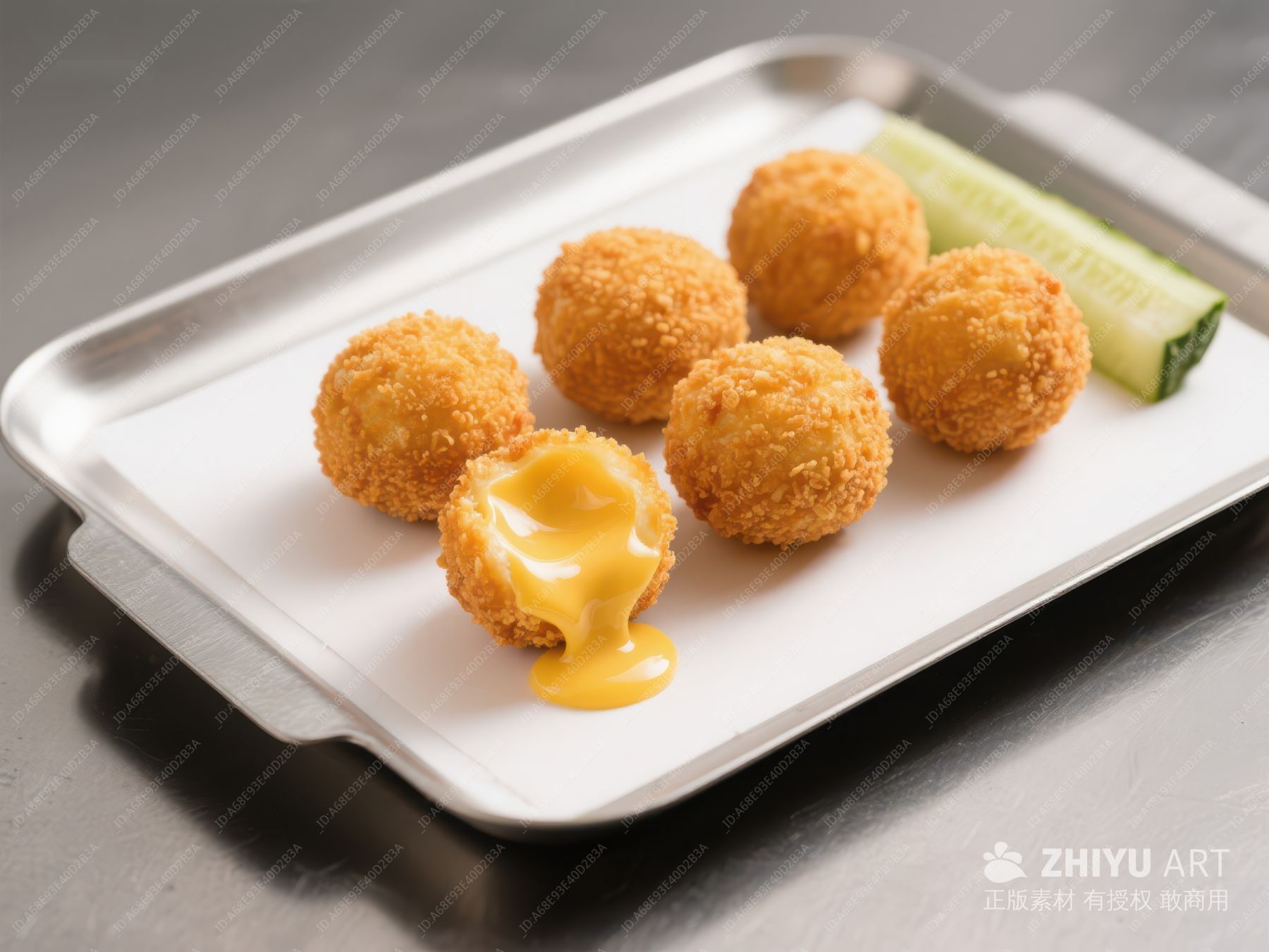 金黄酥脆的蛋黄酱炸球配番茄酱