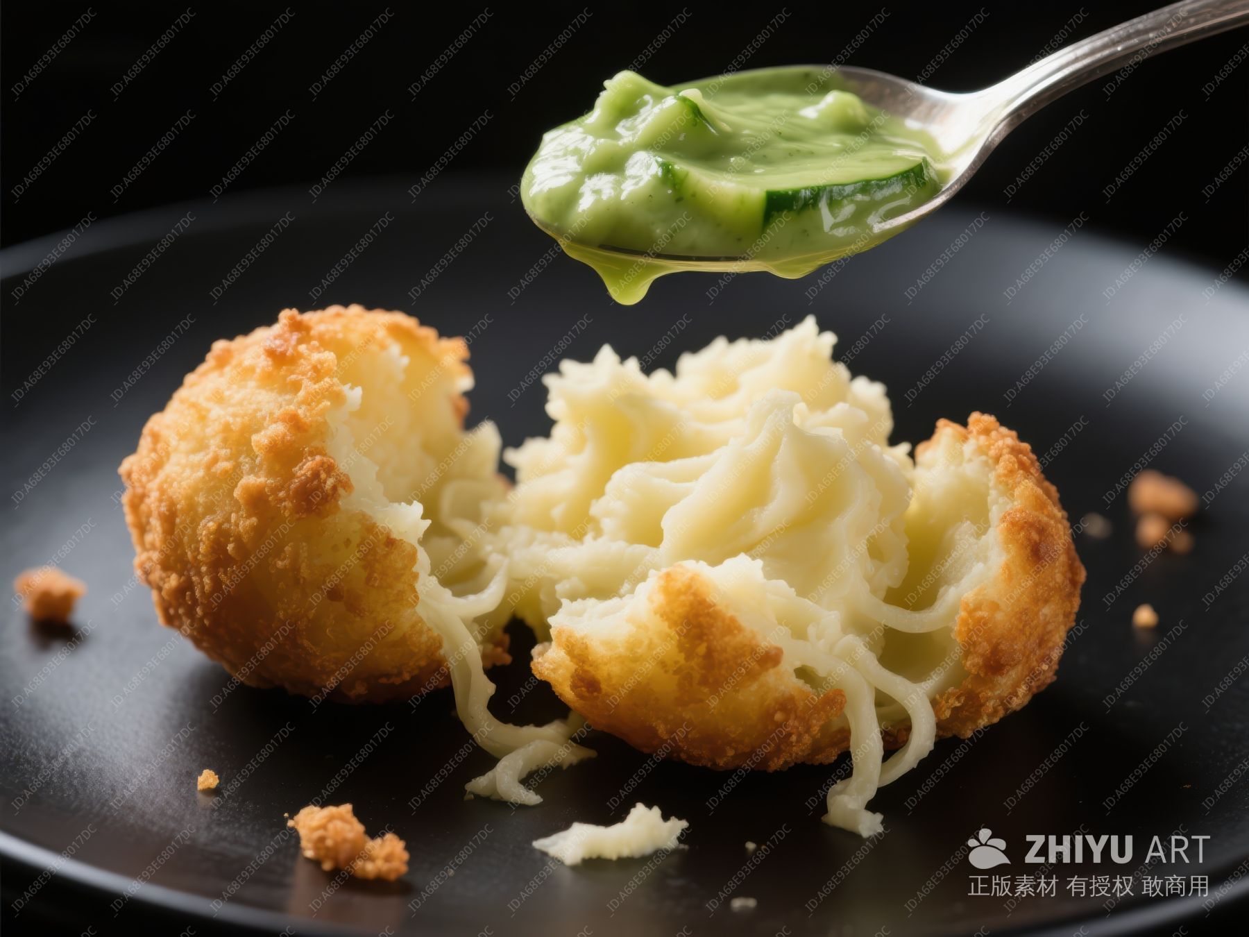 金黄酥脆的蛋黄酱炸球配番茄酱