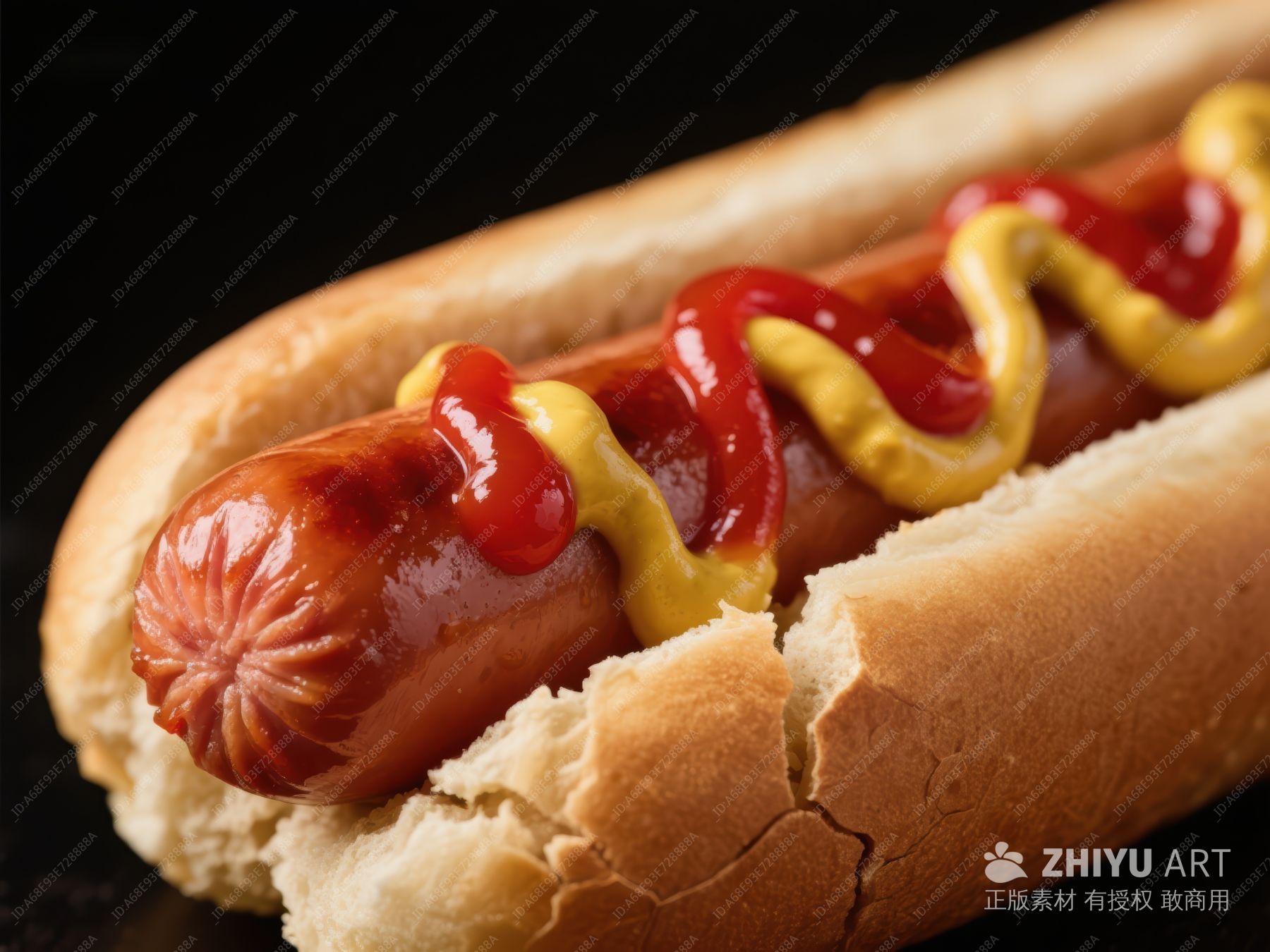 热狗特写:酱料丰富,面包烤香