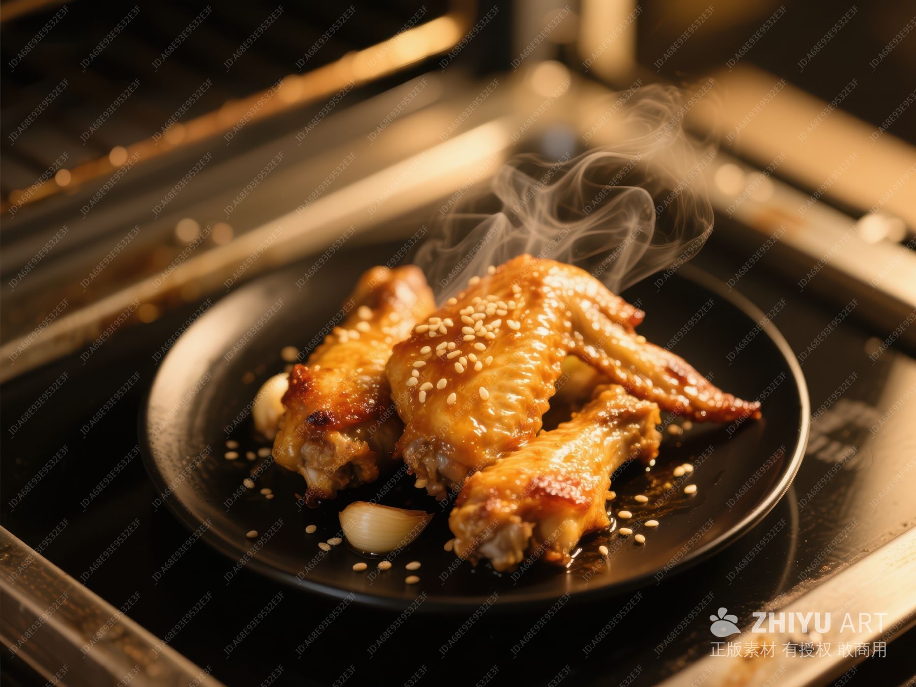 烤鸡翅热气腾腾,诱人美味