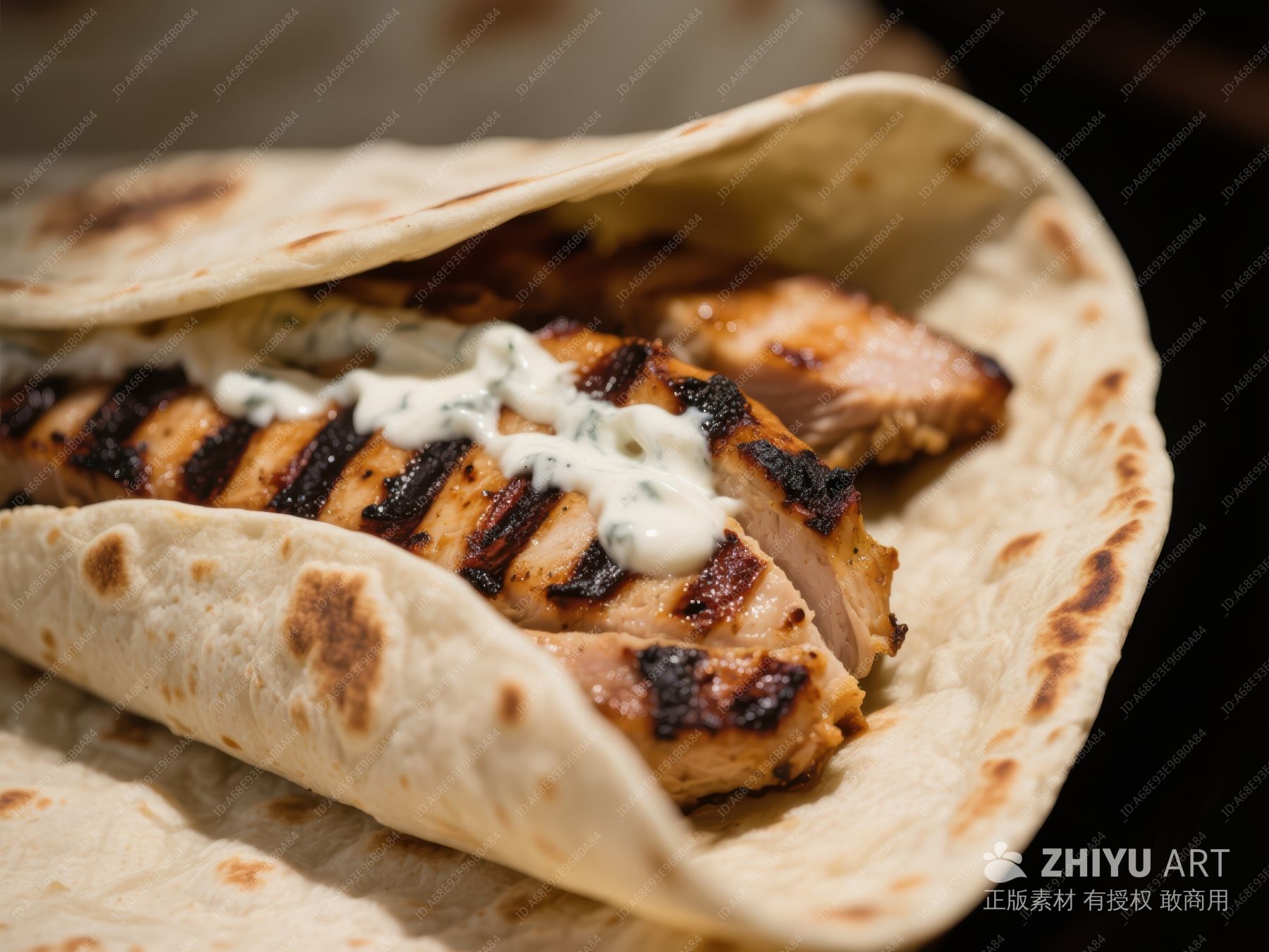 鸡肉卷饼配牛油果酱和紫甘蓝