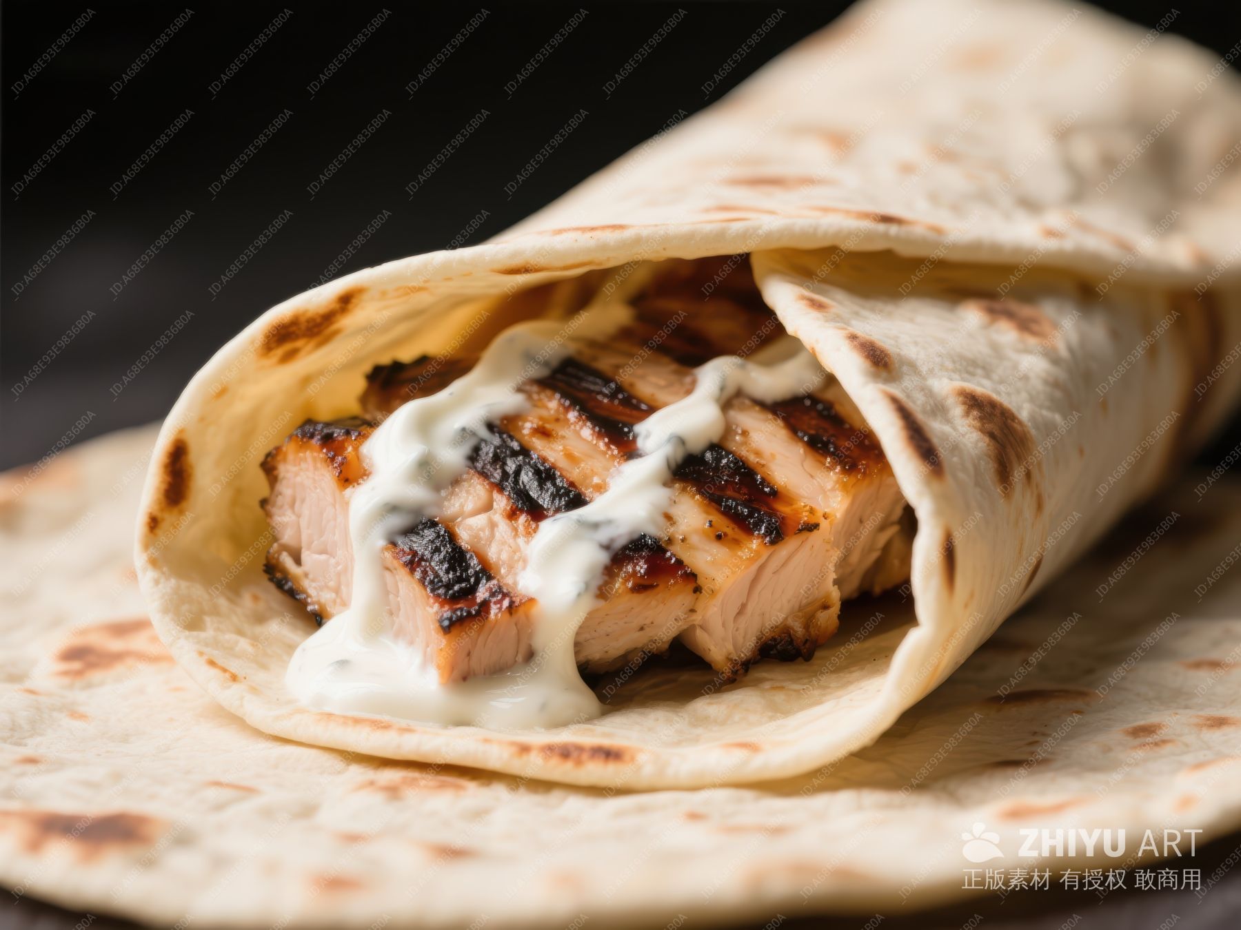 鸡肉卷饼配牛油果酱和紫甘蓝
