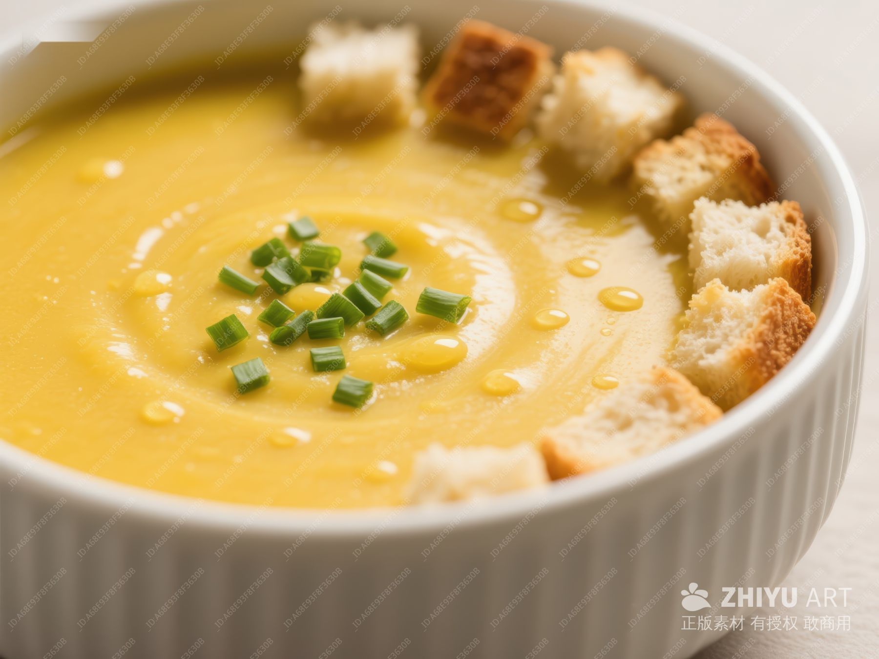 奶油南瓜汤配面包丁和香葱