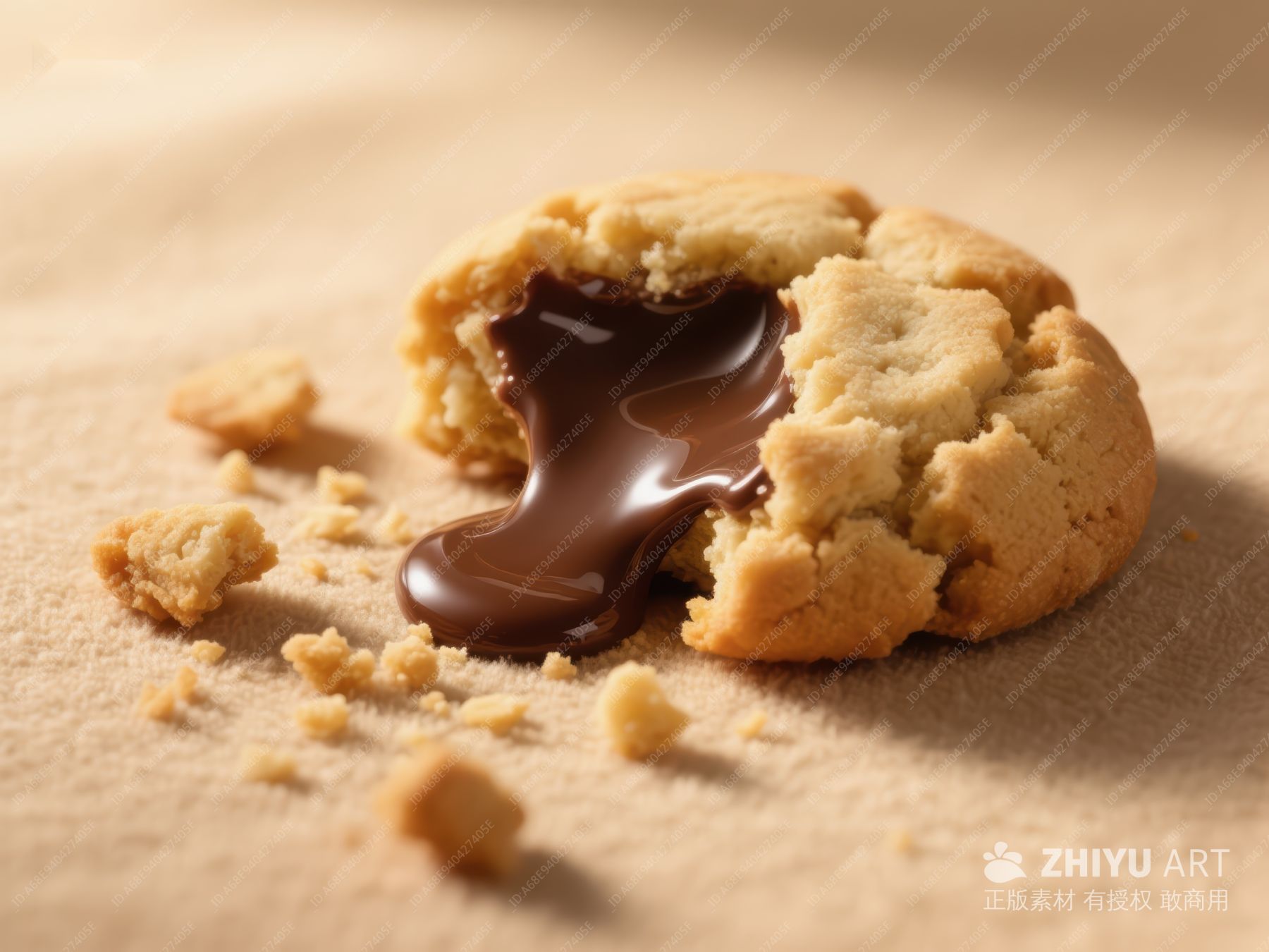 一块巧克力曲奇饼干,饼干表面嵌有许多巧克力块,大小
