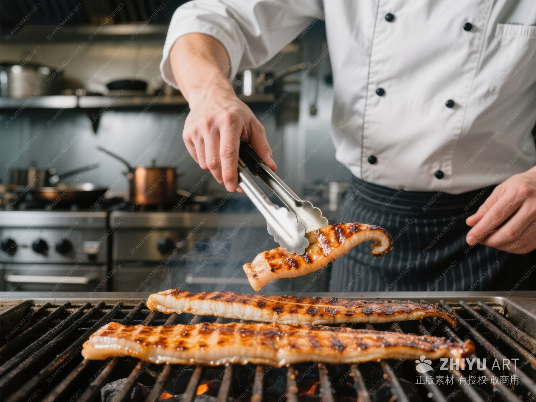 厨师正在烤制鱼肉