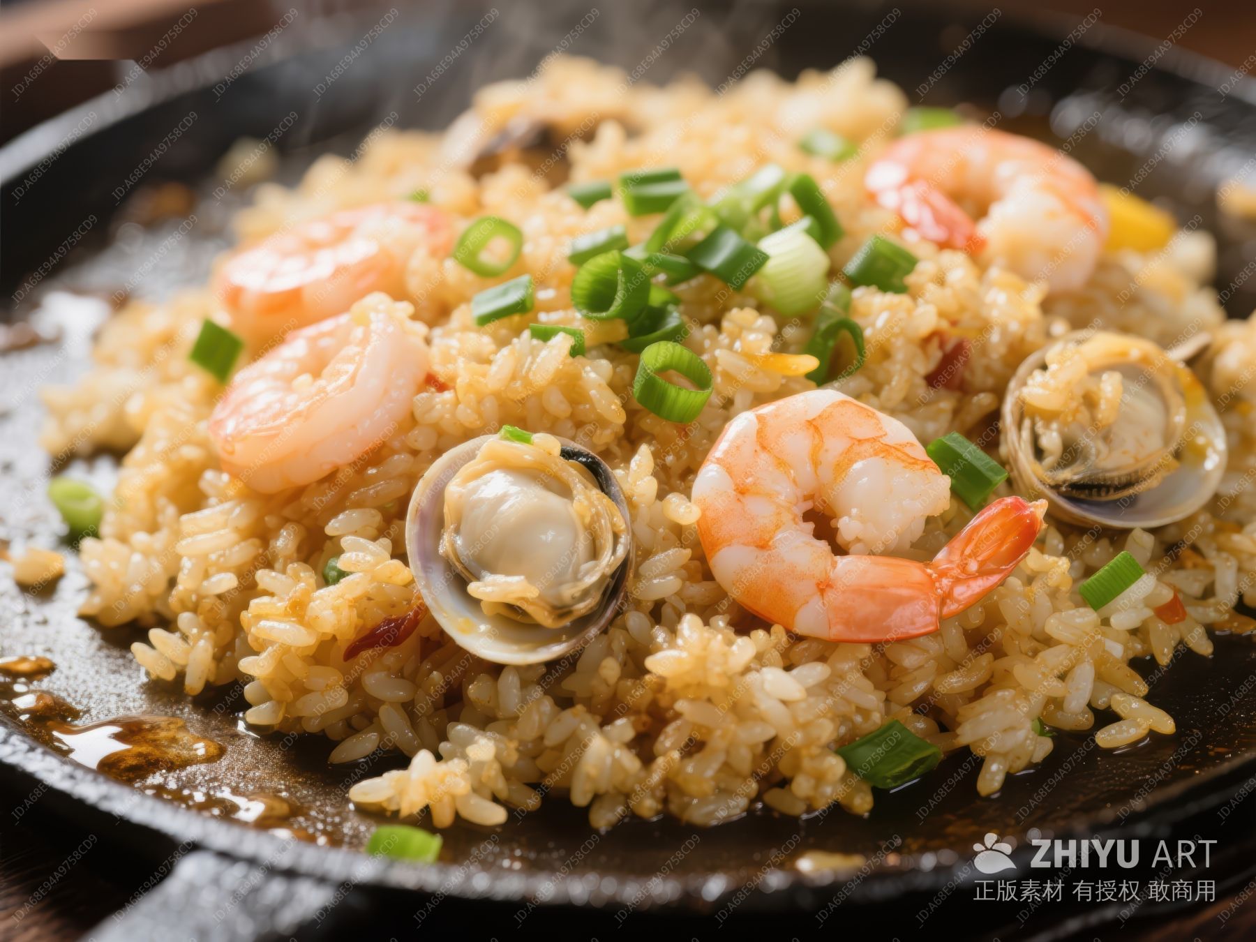 热腾腾的炒饭,虾仁豌豆点缀 960
