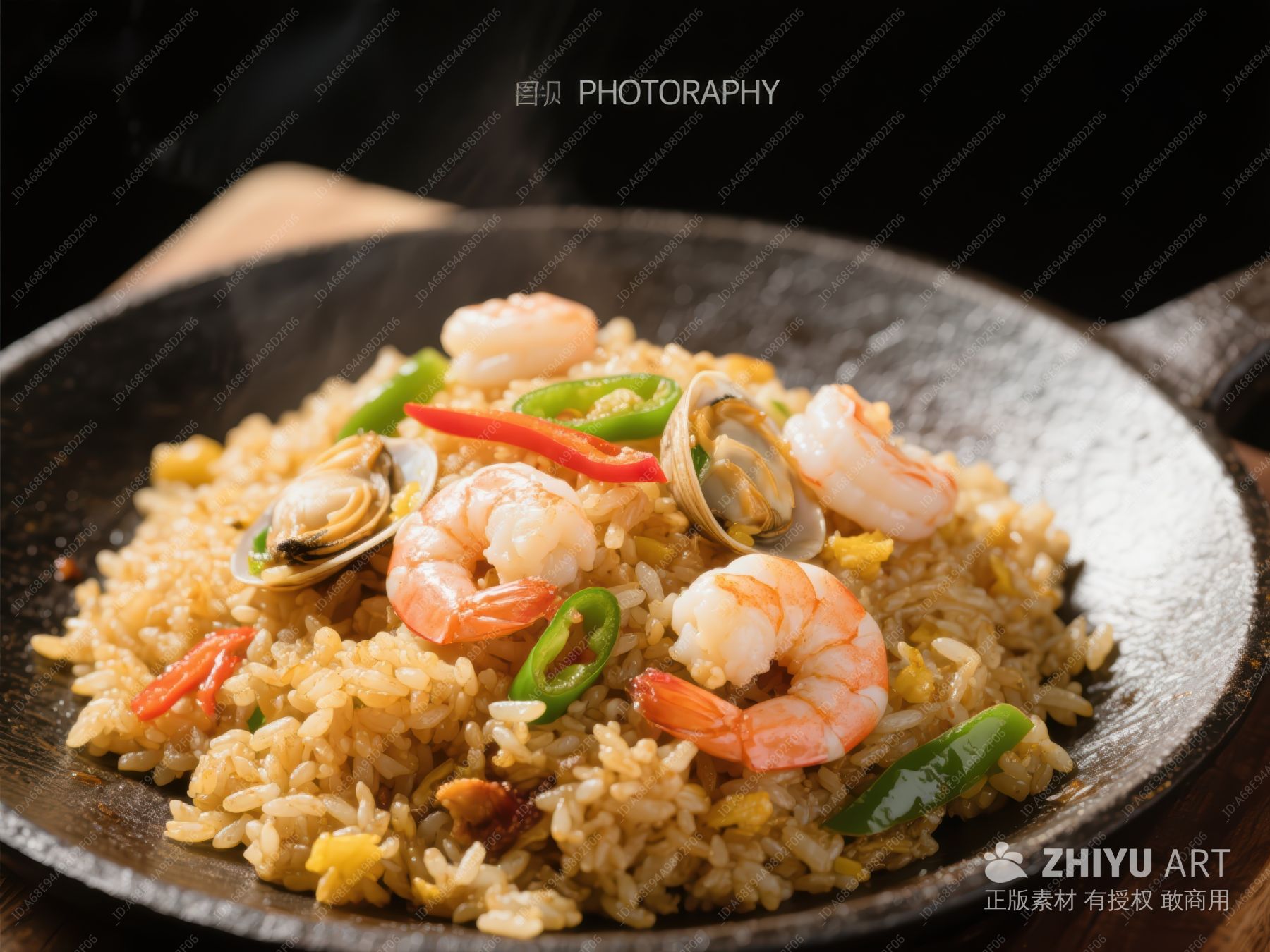 热腾腾的炒饭,虾仁豌豆点缀 960