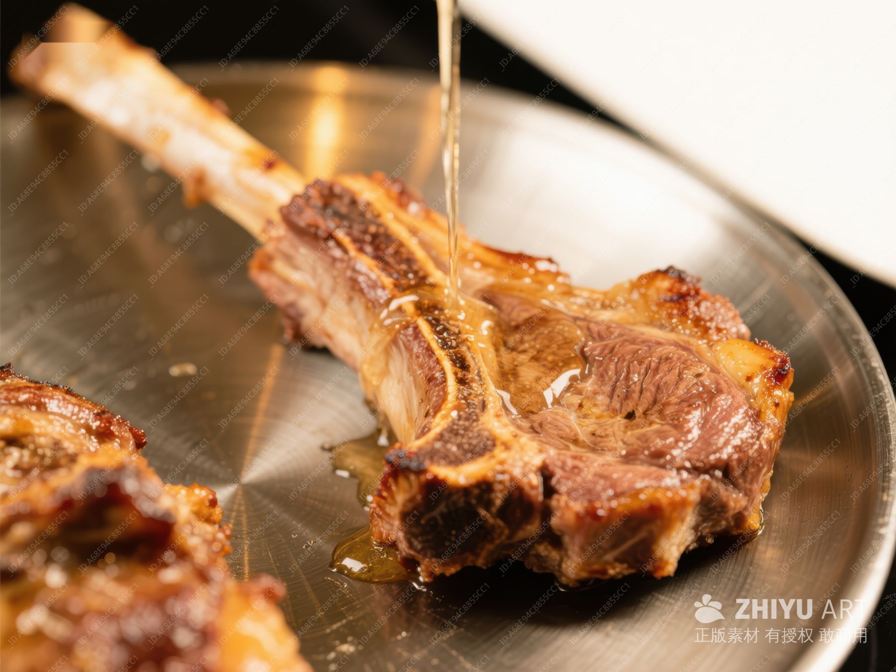 烤羊排淋油特写